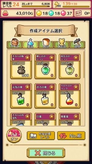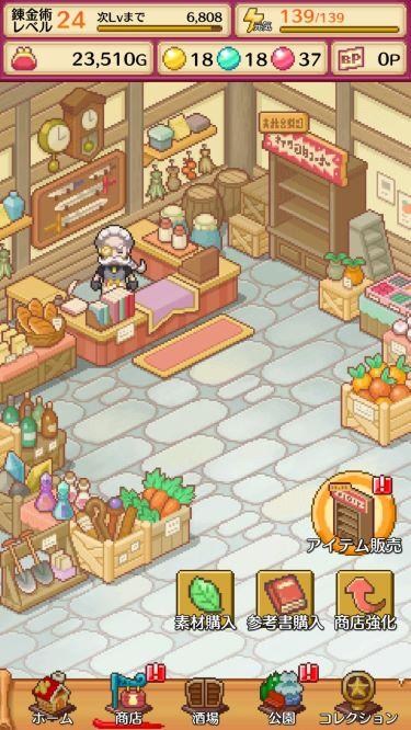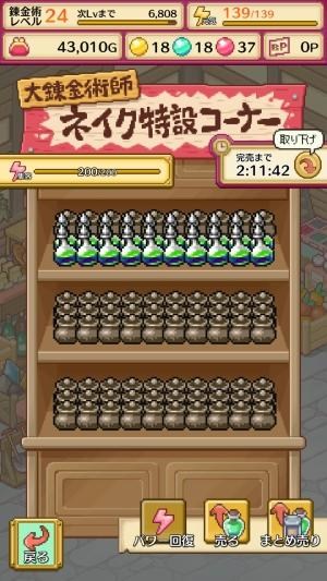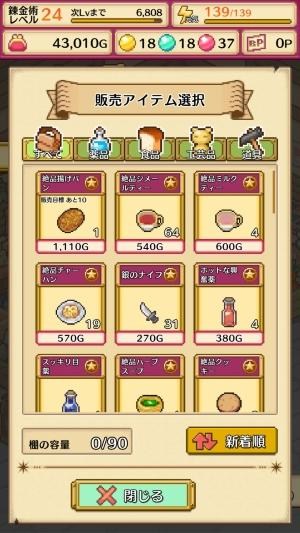 ・把做出來的物品拿去販售賺錢吧!・決定好要放在貨架上販售的物品之後,也是一樣只要放著就會自動賣出了!・每個物品都有販售數量目標,只要完成每個數量目標就能獲得技能點數。