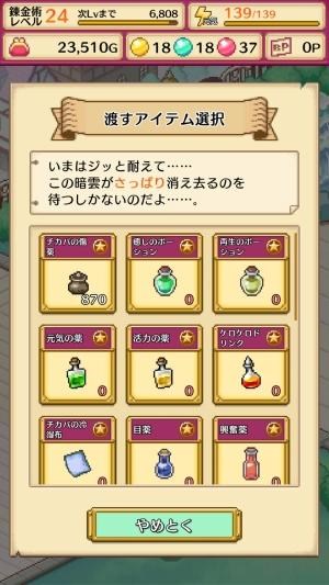 解決煩惱這個玩法,或許就是在考驗玩家的推理能力了!遊戲中會給的提示除了出現在居民的對話之外,就是遊戲預設給玩家的物品類別了。但是如果發現怎麼給都不對的話,也不用氣餒。那表示也許是玩家現在還沒學到的物品!這時候只要加緊練習鍊金術提高等級、販售物品賺錢購買參考書、花錢請冒險者出門收集素材,一來一回之下,或許就會學到那個居民需要的物品製作方法了!