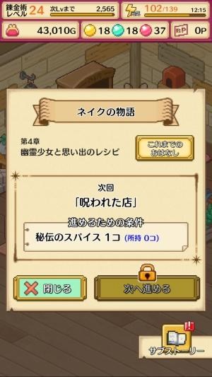 進行主線故事時,只要製作出故事中需要的物品就可以開啟下一章節。隨著主線進行,也會陸續開放支線故事(サブストーリー)讓玩家可以深入了解每個角色的魅力或故事的另一面。不過,這些支線故事沒有限制閱讀時間,看玩家想完成主線再看,或是有空再看,放著不看也是 OK 的啦!