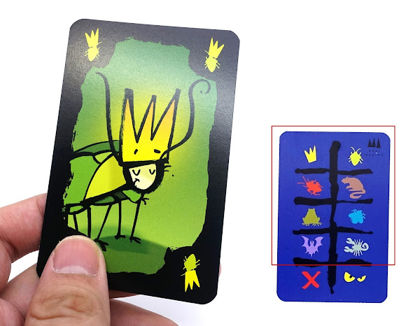 ▲每次輪到你的時候,你必須從手上面朝下打出一張卡,把那張卡放到任何一位玩家面前,並聲稱那張卡是『XX』。『XX』可以是你牌背上方的八種符號其中一種,可以說它是【皇冠】、【臭蟲】、【蟑螂】、【老鼠】、【蟾蜍】....等。當然,你可以實話實說,也可以說謊~