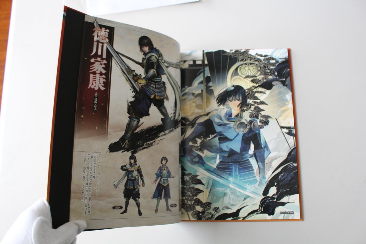 第二排・原聲音樂CD(2枚組)/中文封面實體版遊戲本體/・明信片套組(全無雙武將,包含展示立架)/・角色設定畫集(約65頁)