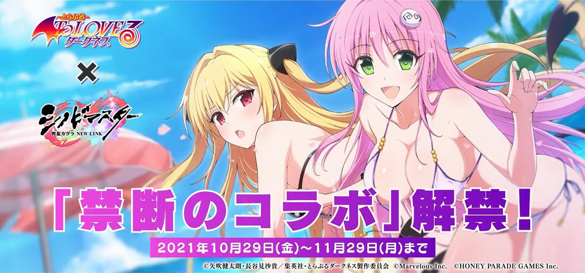 《閃亂神樂 NEW LINK》日版今日 (10/29) 正式展開與《出包王女 DARKNESS》的連動合作,而這也是《出包王女》系列在 15 週年慶期間,首度推出的遊戲合作活動。本次新登場角色包括「菈菈」與「小闇」,由我看來選擇這兩位當作首波新角色相當合適,畢竟「菈菈」、「小闇」分別為《出包王女》與《出包王女 DARKNESS》的重點女主角,以 15 週年的合作活動來說很有意義!