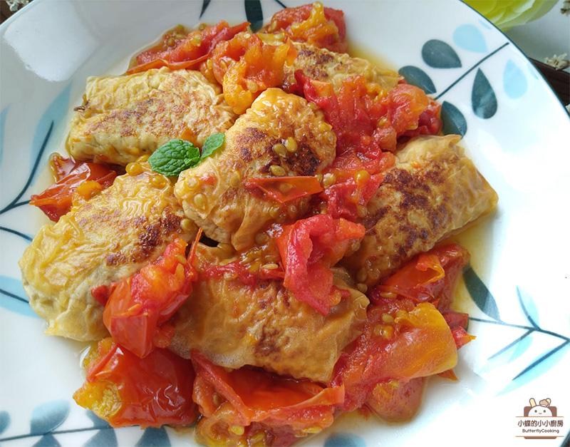 【番茄燒千張雞肉捲〞】