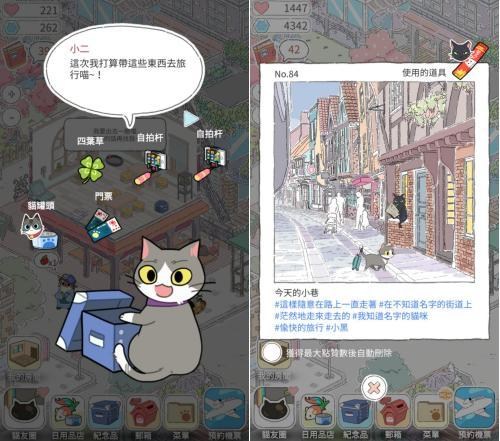 在旅行中,玩家可以根據放置的時長來選擇適合的旅行目的地,不同的目的地將會有不同的風景與猫咪相遇。