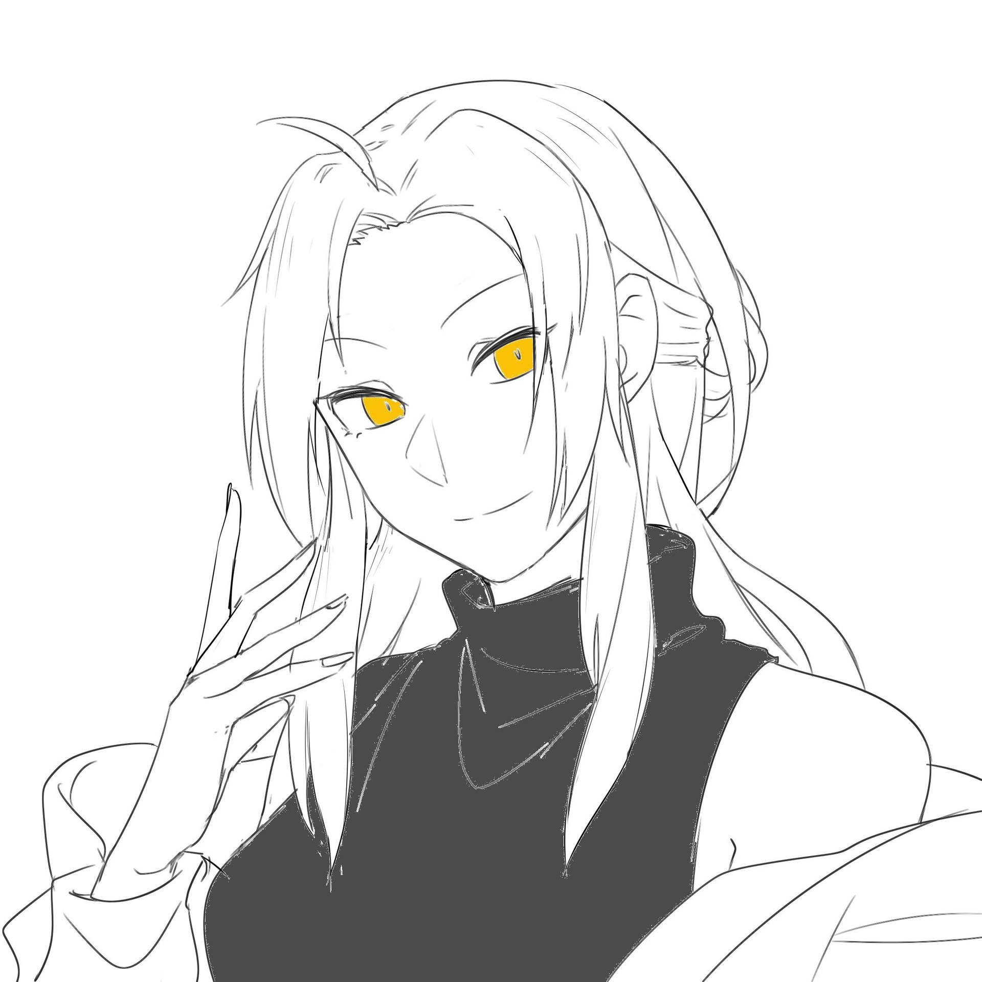 那是一名窈窕的女性,灰藍色的長髮如瀑至纖細的腰際,金色的眼瞳仿如夜空中的星子,短裙下是姣好的長腿,嫩白的肩頸在寬鬆而時尚的大衣下若隱若現。
