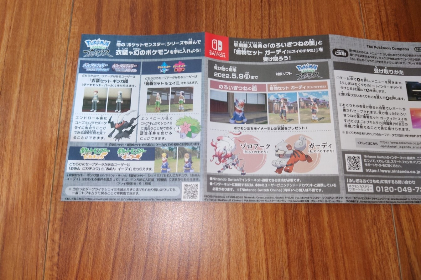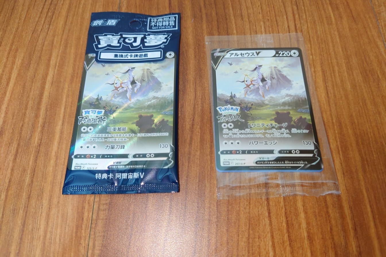 日版特典,跟中文版一樣是給阿爾宙斯的寶可夢卡牌,但是因為日本已經沒有在玩GAOLE所以沒有像中文版加送一張GAOLE