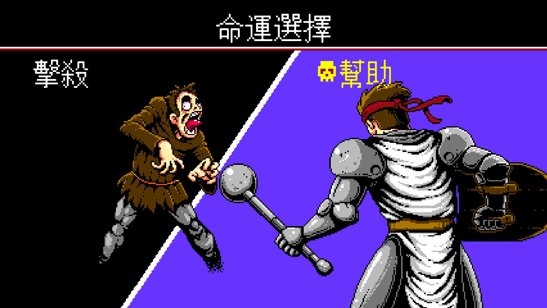 接著取得死靈之書的條件為分別把正義或邪惡傾向的支線任務作夠多後,開啟各自的最後任務才能取得死靈之書(武器防具旁邊那一格???),在持有死靈之書的狀況下去找城堡內的BOSS,原本的BOSS都會被地獄之門伸出的觸手抓走,之後正義傾向進入地獄之門打通最終迷宮的BOSS後會進入結局2【義人】,邪惡傾向則是會變身成魔人狀態衝進地獄之門,用橫捲射擊的模式直接和BOSS戰鬥,戰勝後進入結局3【惡行】。
