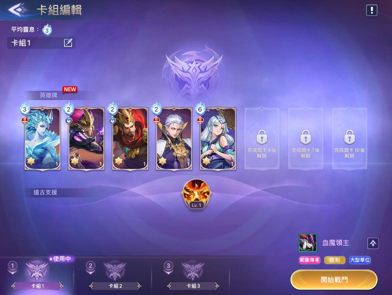 入關卡前可先安排一下上陣卡組。