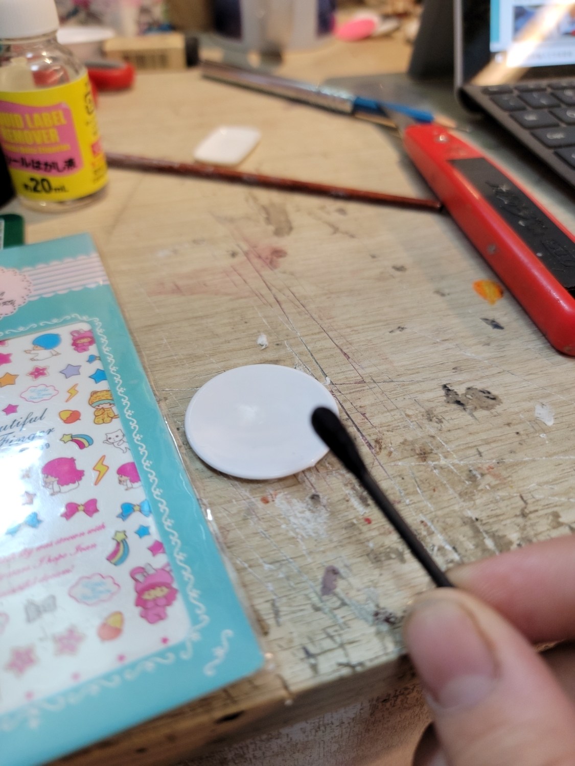 準備拼貼,確認碟沒有灰塵才黏貼。