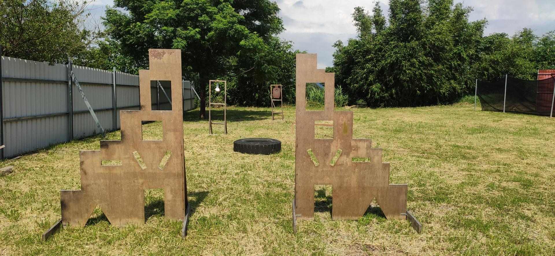 休息區正面便是試槍區了,設有木製的七洞版以及人形鋼鈀,從底線到樹林區約有25公尺,對於調整槍枝的HOP-UP是明顯不夠用的;但用於七洞板的戰術動作訓練倒是綽綽有餘。