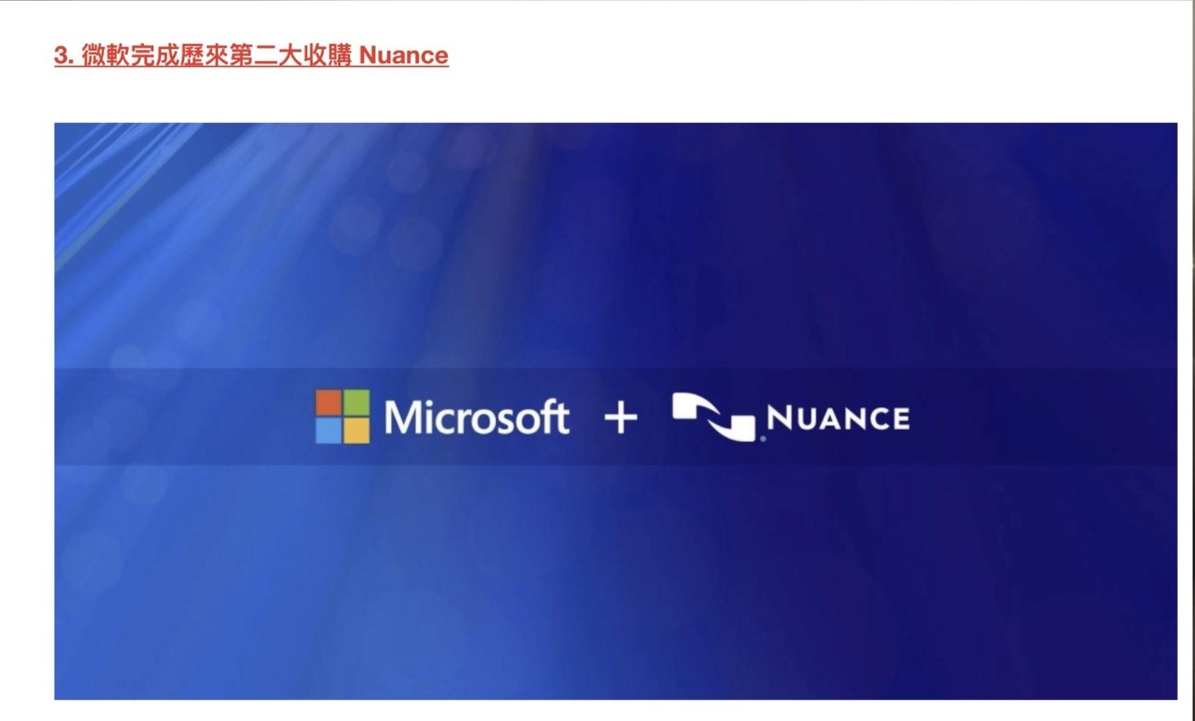 3月時我提及其完成了近年第二大收購Nuance,正是將雲端技術擴展到醫學專業及應診的範疇。