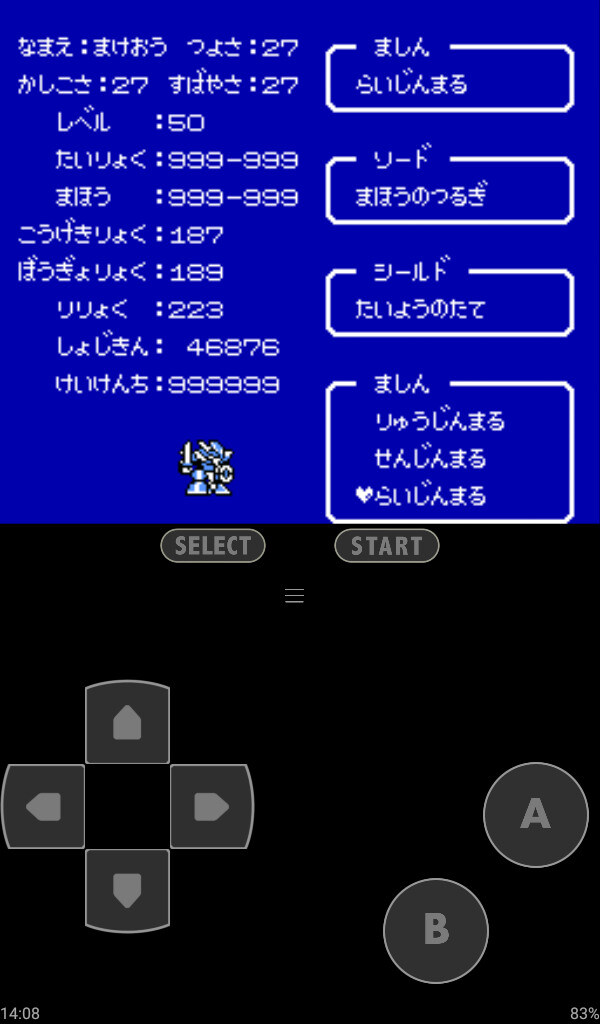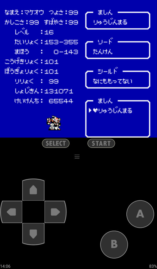 模擬器:com.johnemulators.johnness 版本:ブイ2.02遊戲映像檔名稱:Majin Eiyuu Den Wataru Gaiden (J).nes