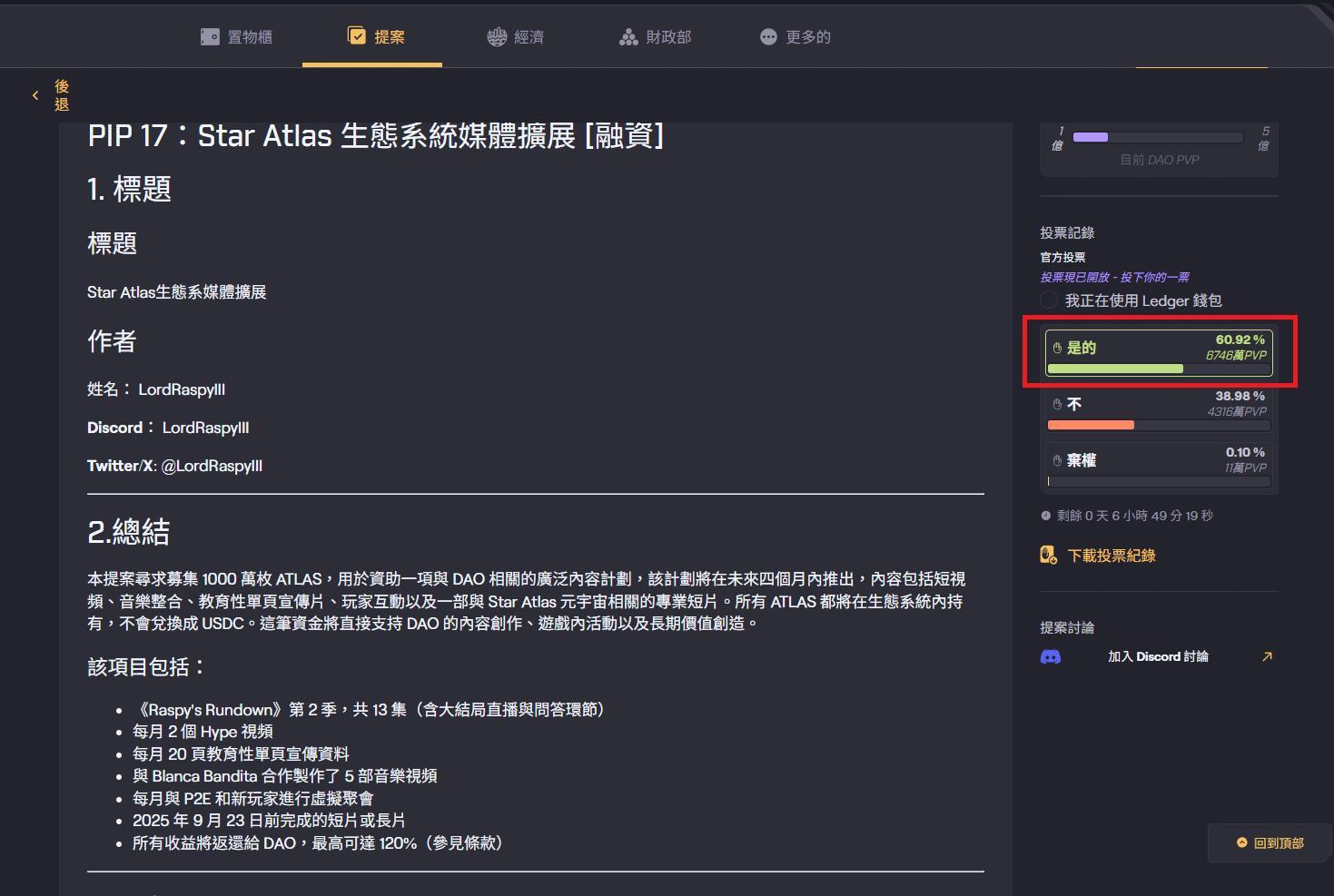 然後後來我改為「棄權」,可以看到11萬的PVP隨著我的這一票流動過去
