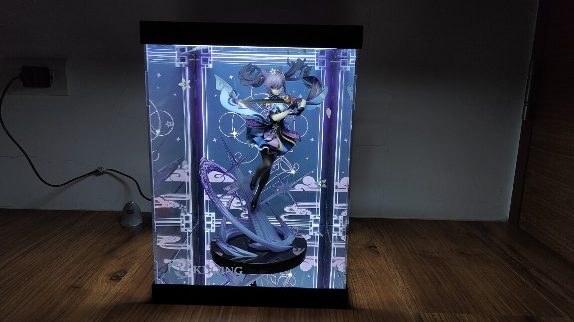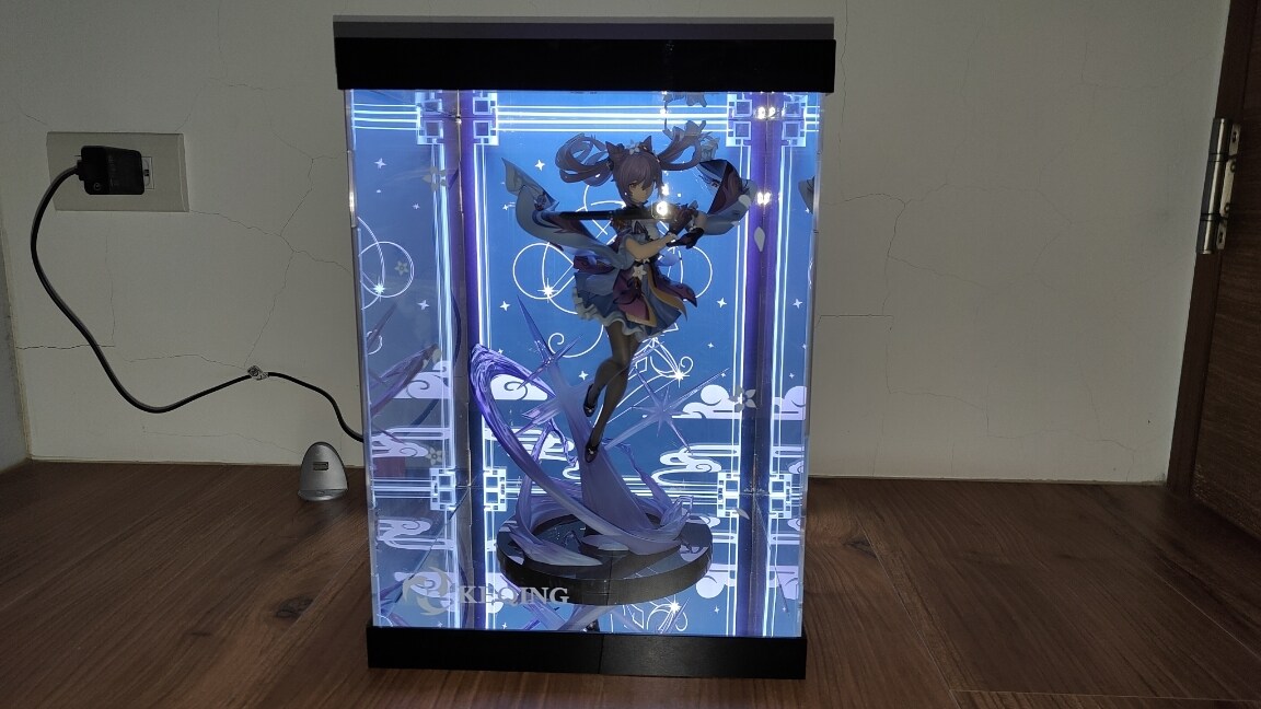 以上是這次的刻晴跟展示盒開盒,這次的刻晴一樣不負眾望有著高品質的表現,不論是細節的塗裝、布料的皺摺、特效的呈現等等都細節滿滿,而這次的展示盒也與之前的設計不同,以命座為背景加上鏡面以及燈光的搭配提升一個新的層次,擺設起來氣勢許多