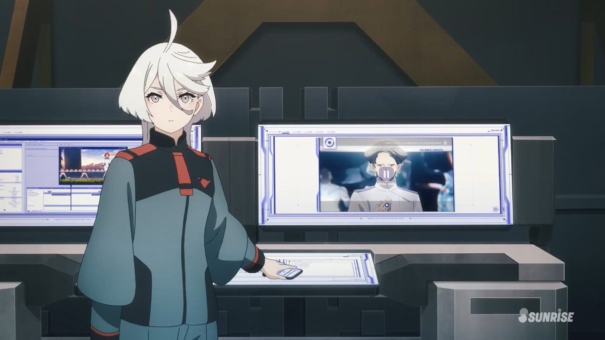 雖然恐怖分子的部隊已經撤退了,但太空站內還是留有殘存的恐怖分子。帶著受重傷的戴林格總裁「前進」的米奧琳涅不幸遇上了即使要同歸於盡也想要殺死總裁的恐怖分子。在《水星的魔女》世界中宇宙資本對於地球人的剝削有多麼嚴重,才這點就可以看出來。那個「恨」是根基於多少的苦難與被剝削。