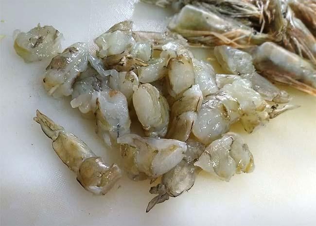 1.鮮蝦去頭去殼去蝦泥,留下蝦頭與蝦仁,蝦仁切成段