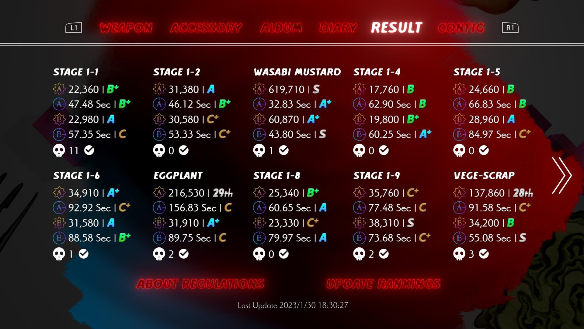 ▲可以在選單裡查看個關卡的成績狀況,全部80個關卡都有A跟B的成績才會跳獎盃。