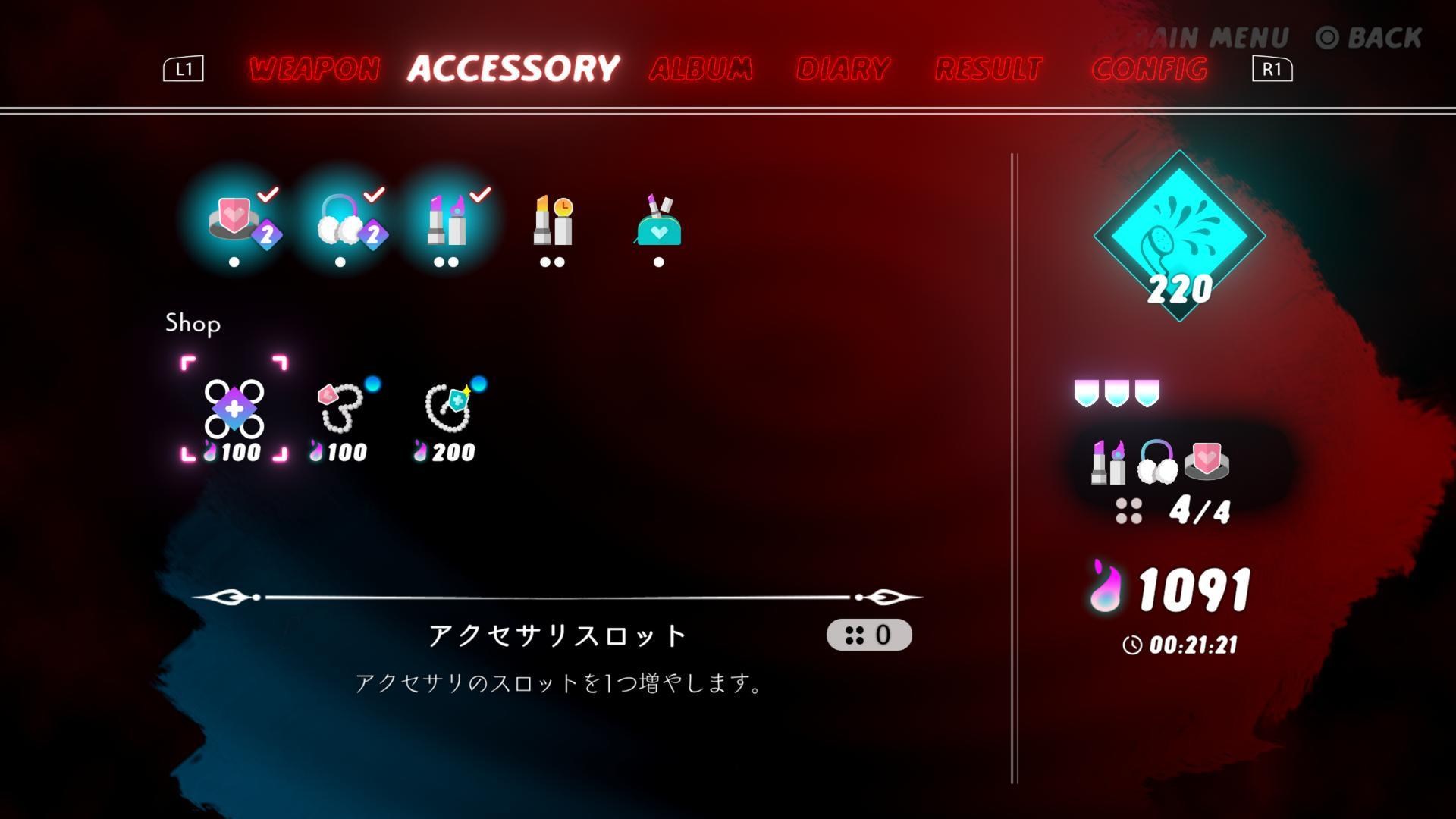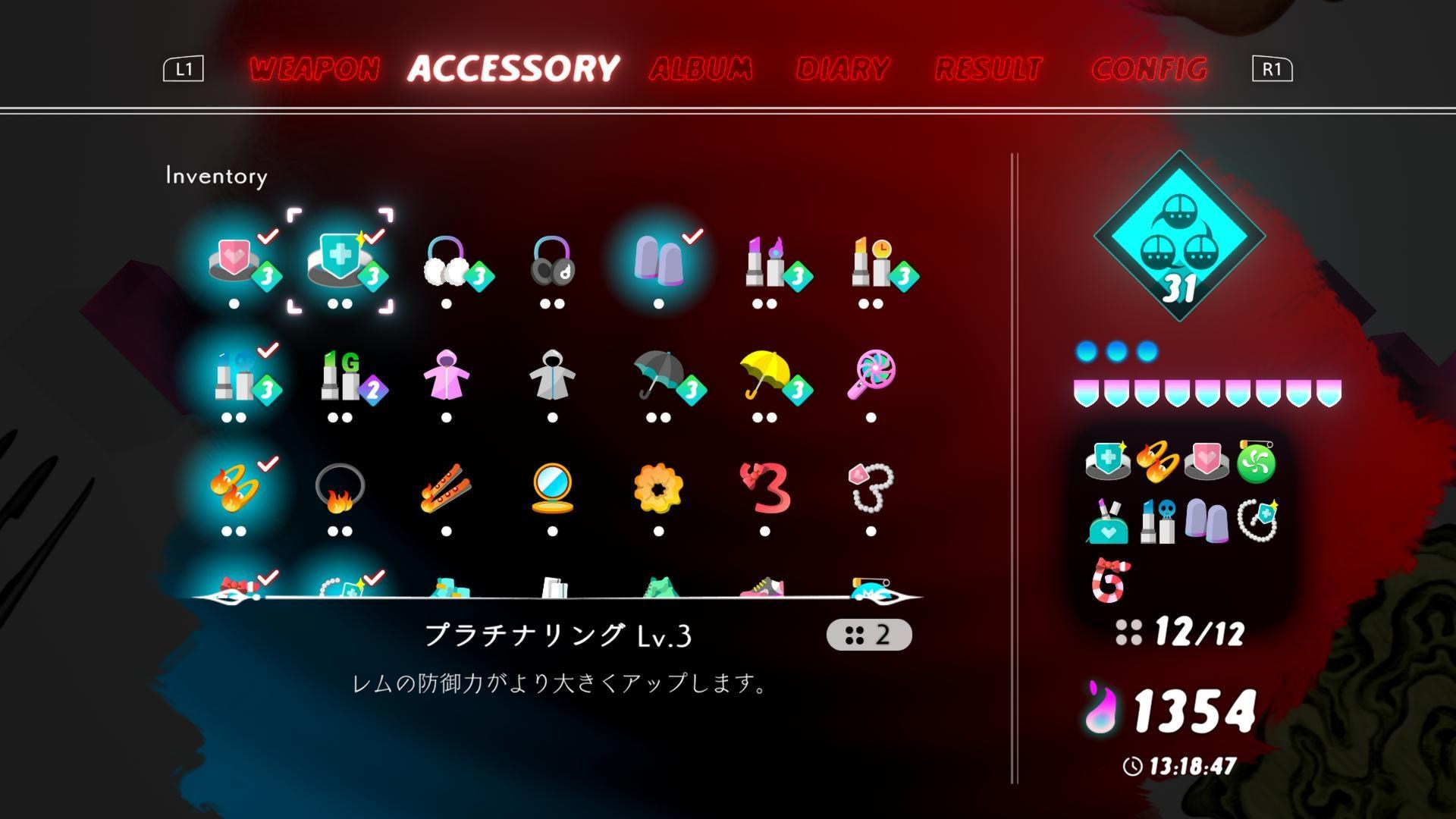 ▲若是看到商店出現擴充飾品也請立即下手,飾品等級和數量決定遊玩的舒適度。此外在裝備飾品時還請留意飾品會耗費多少格數,像上圖第一枚戒指會佔一格,旁邊的耳機也是一格,但紫色口紅便佔了兩格。飾品最大擴充到12格,課題是如何有效運用飾品發揮最大性能。