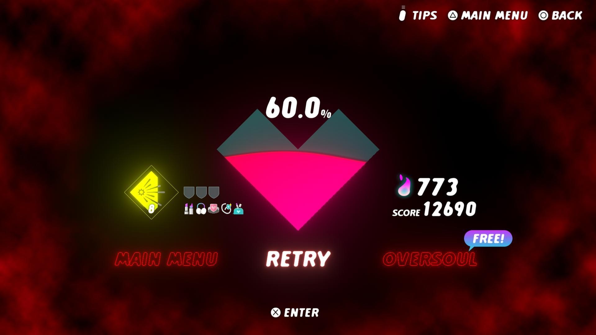 ▲靈魂收集到100%就過關。玩家的生命值(也就是護盾數)歸零只能重新挑戰,有時失敗會有驚喜發生,請看下圖。