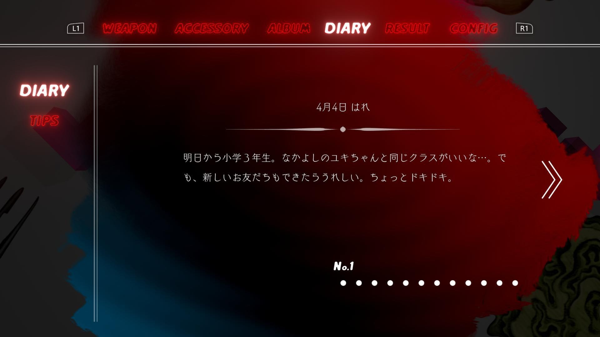 ▲過關或者死亡時機率性出現少女的日記,也請以收集所有日記為目標,觀察少女不為人知的心思。