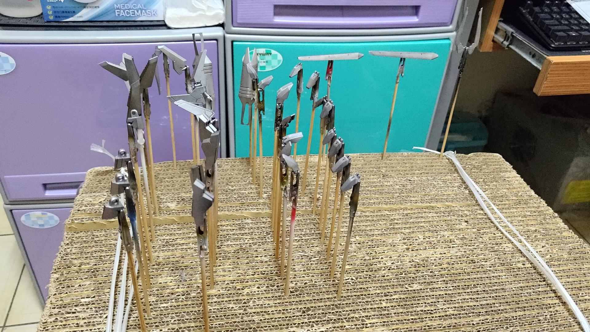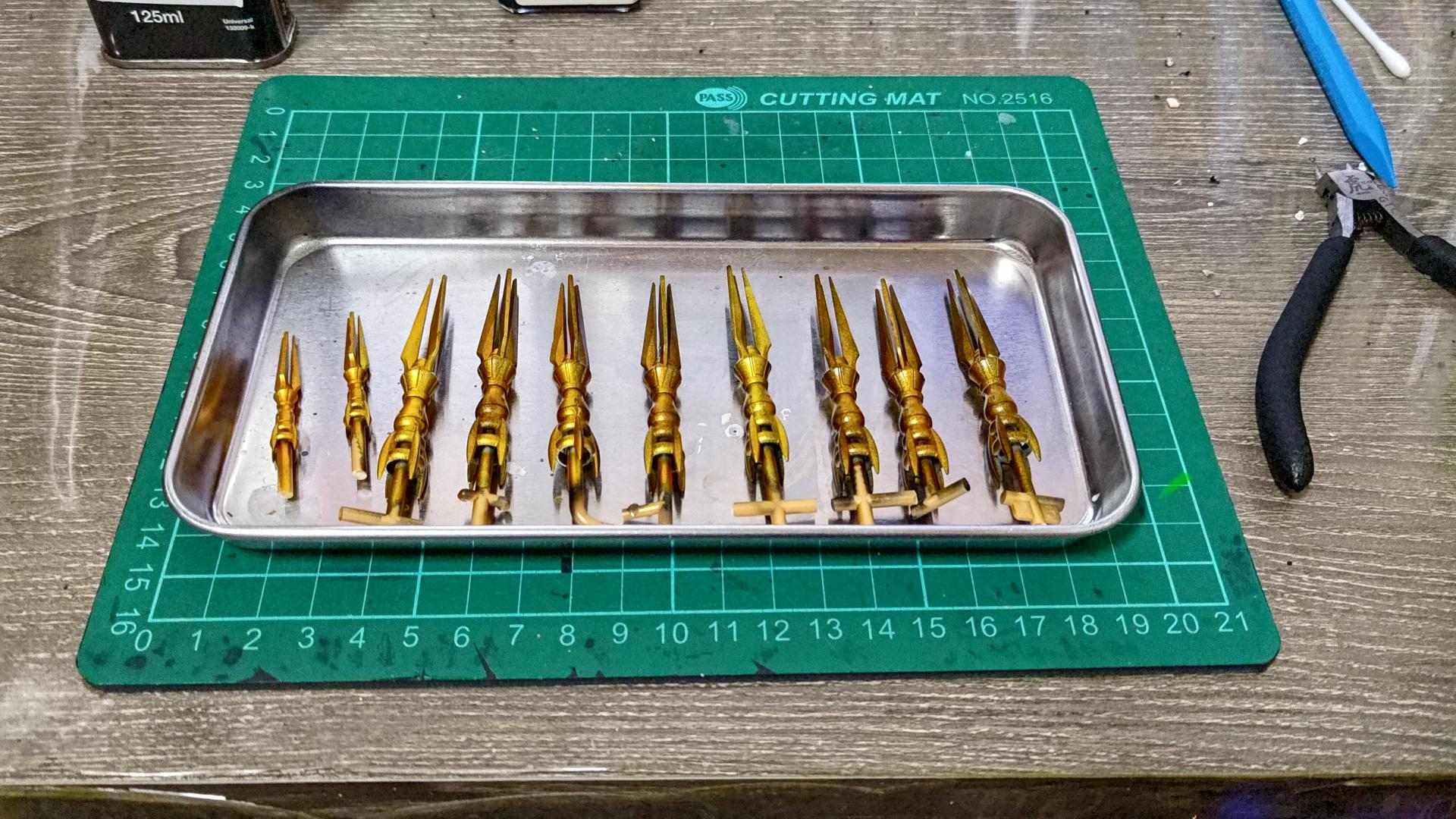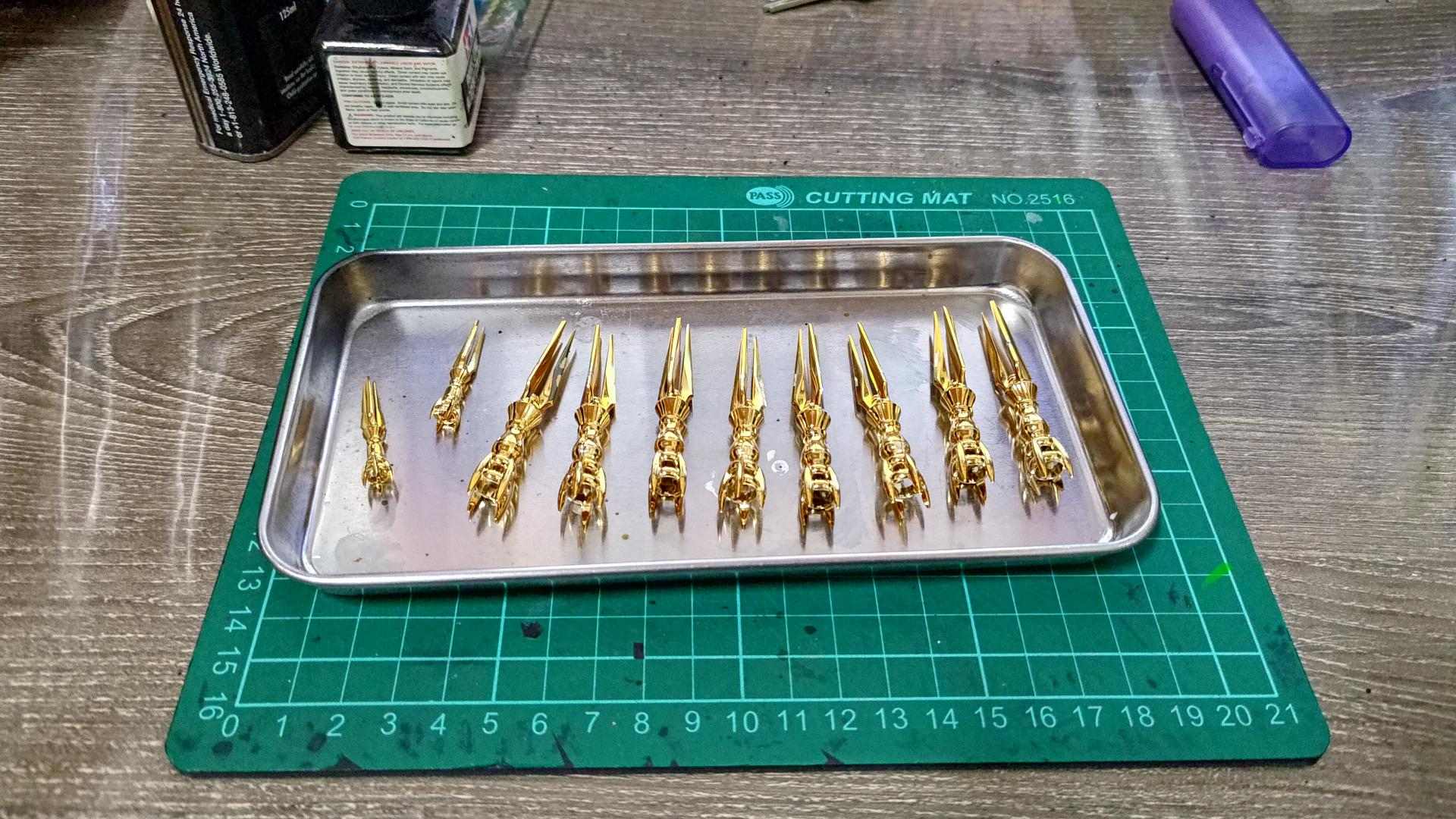 最右邊的因為忘記有層電鍍漆,阻礙了組合硬塞結果末段斷兩根,後來接合處的漆都把他刮掉了,反正闔上去也看不到