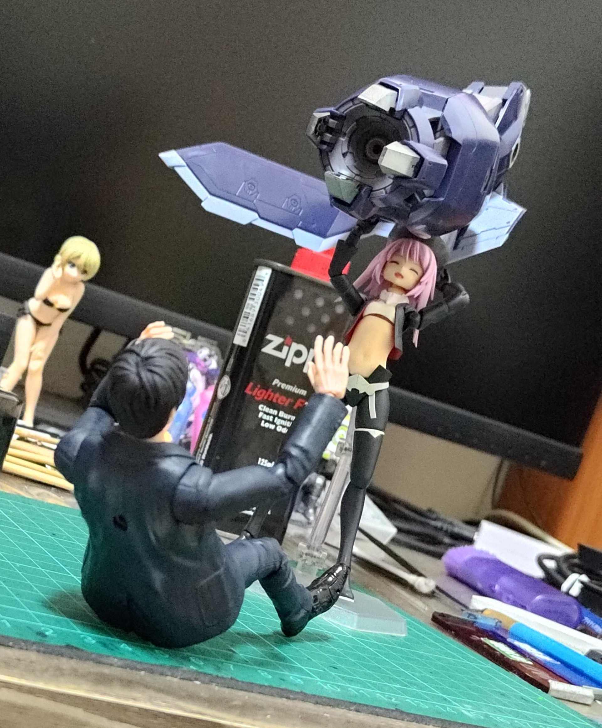 然後這次我噴半光澤保護漆,但好像噴得太薄,擺姿勢期間刮到了一些部分