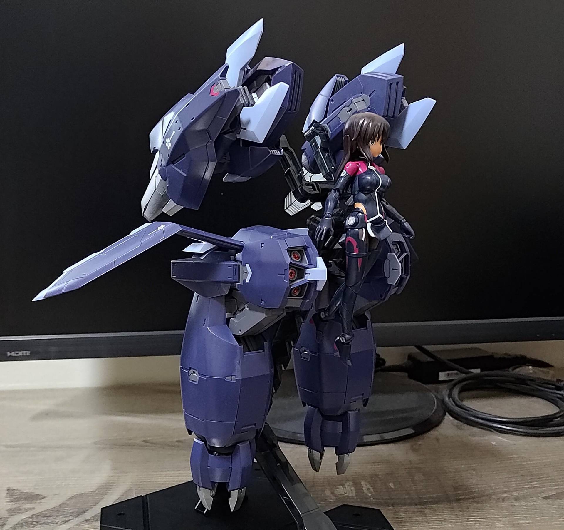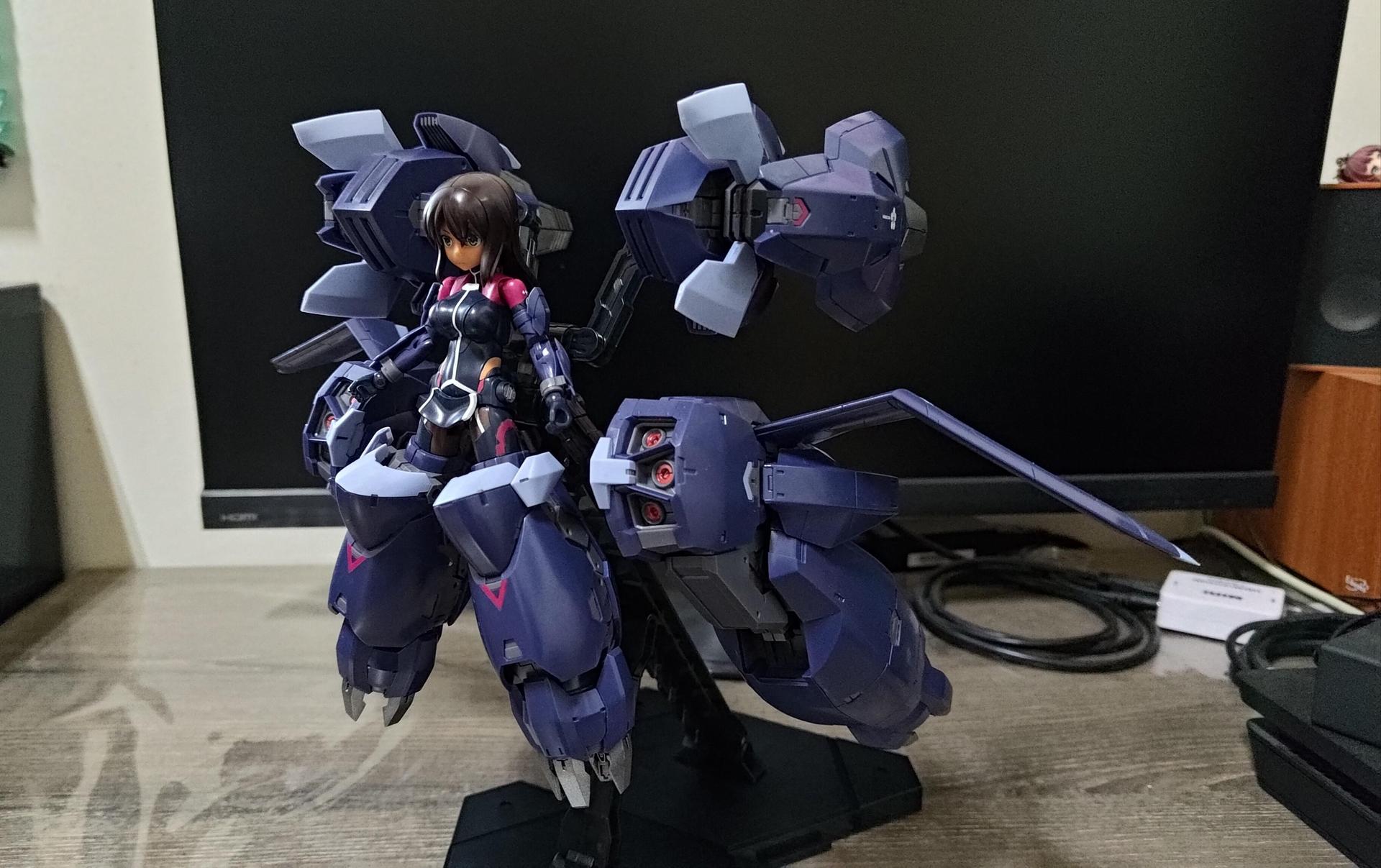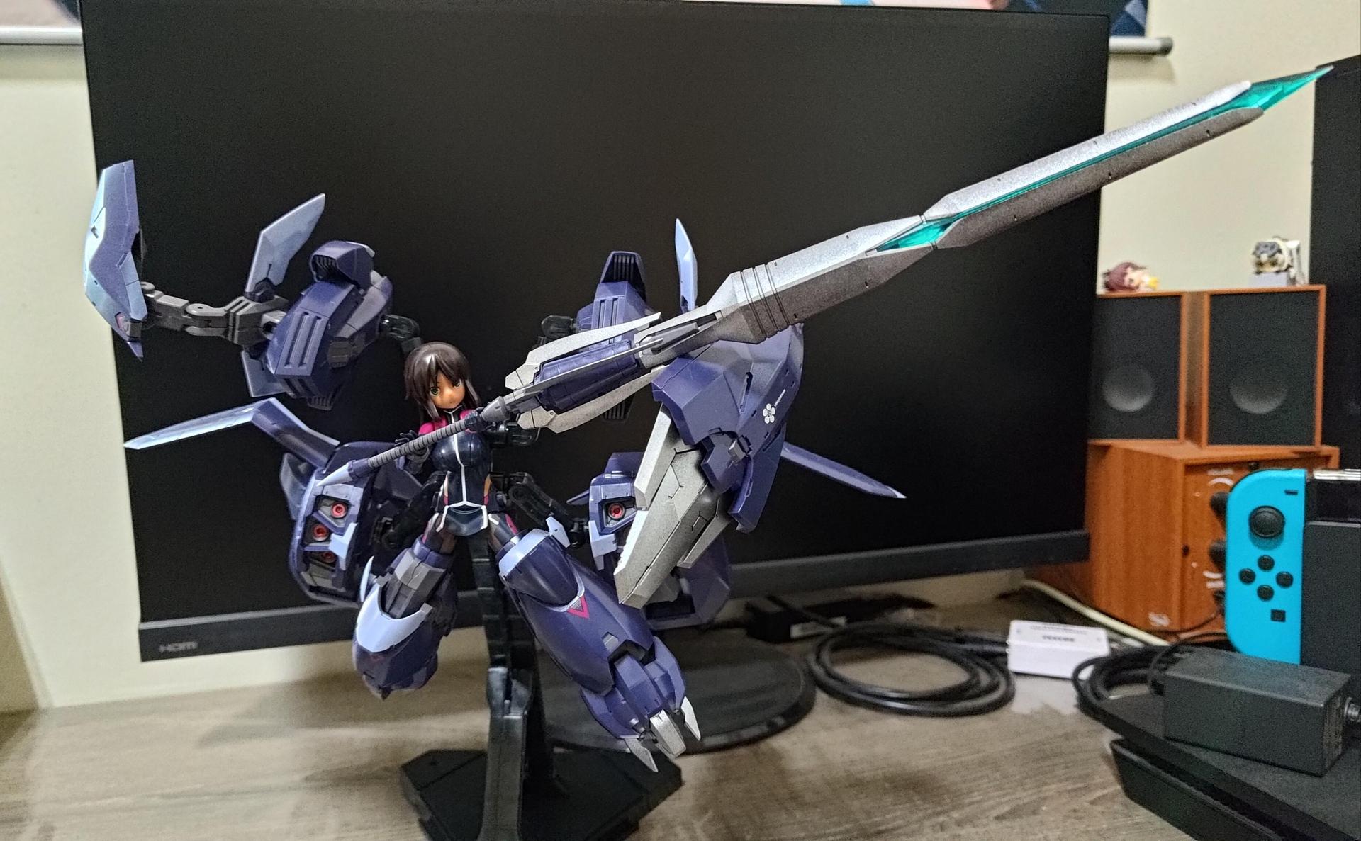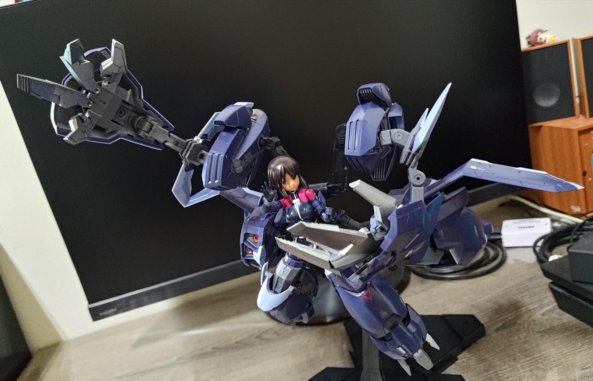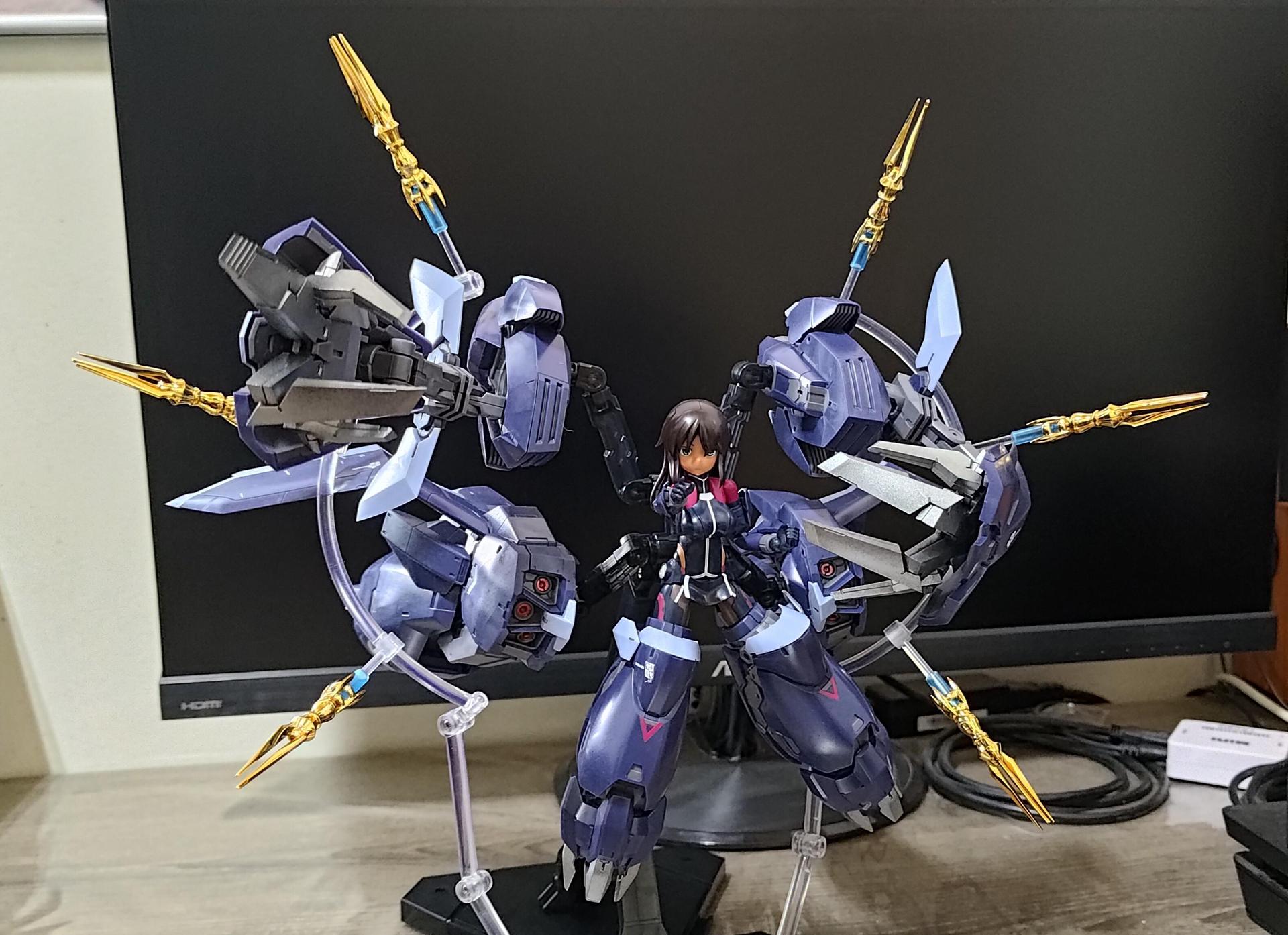 因為天機象神本身配色我覺得還OK所以就沒打算改,原先打算只有把爪子噴銀色跟浮遊砲重噴金色,後來決定腳部裝甲跟後背部末端的腳爪以及長槍槍身也一起噴銀色