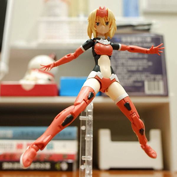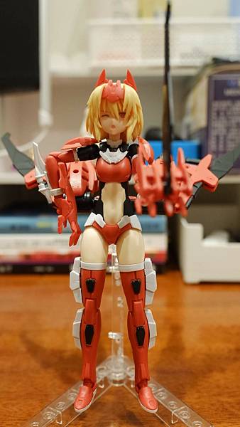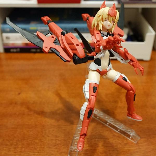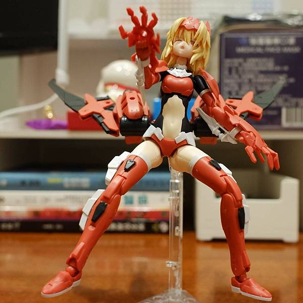 身體完成,上展示架,還沒有添加武器和其他配件,先擺個姿勢拍張照,這時候差不多已經過了兩個小時,嚴重超時。