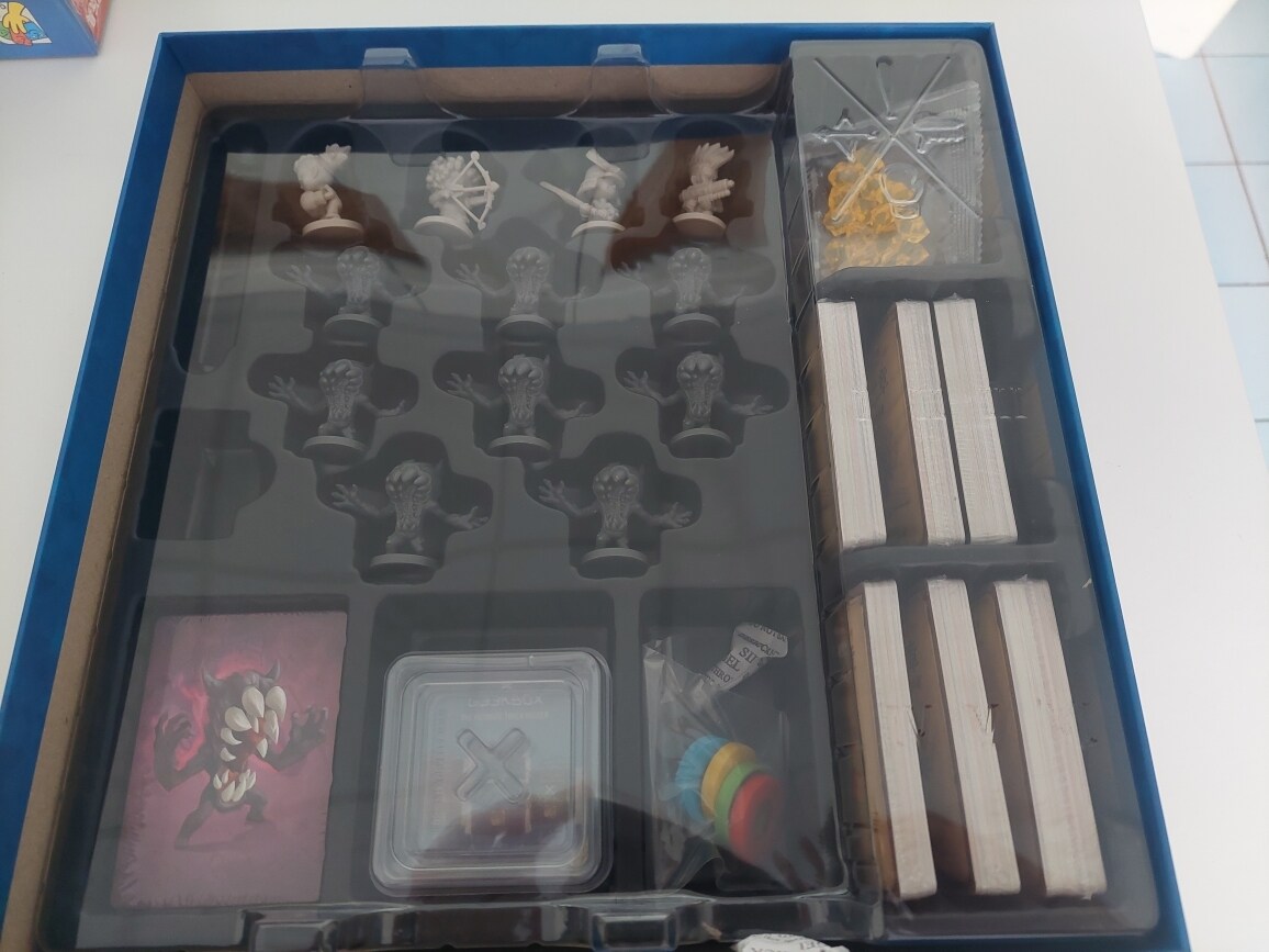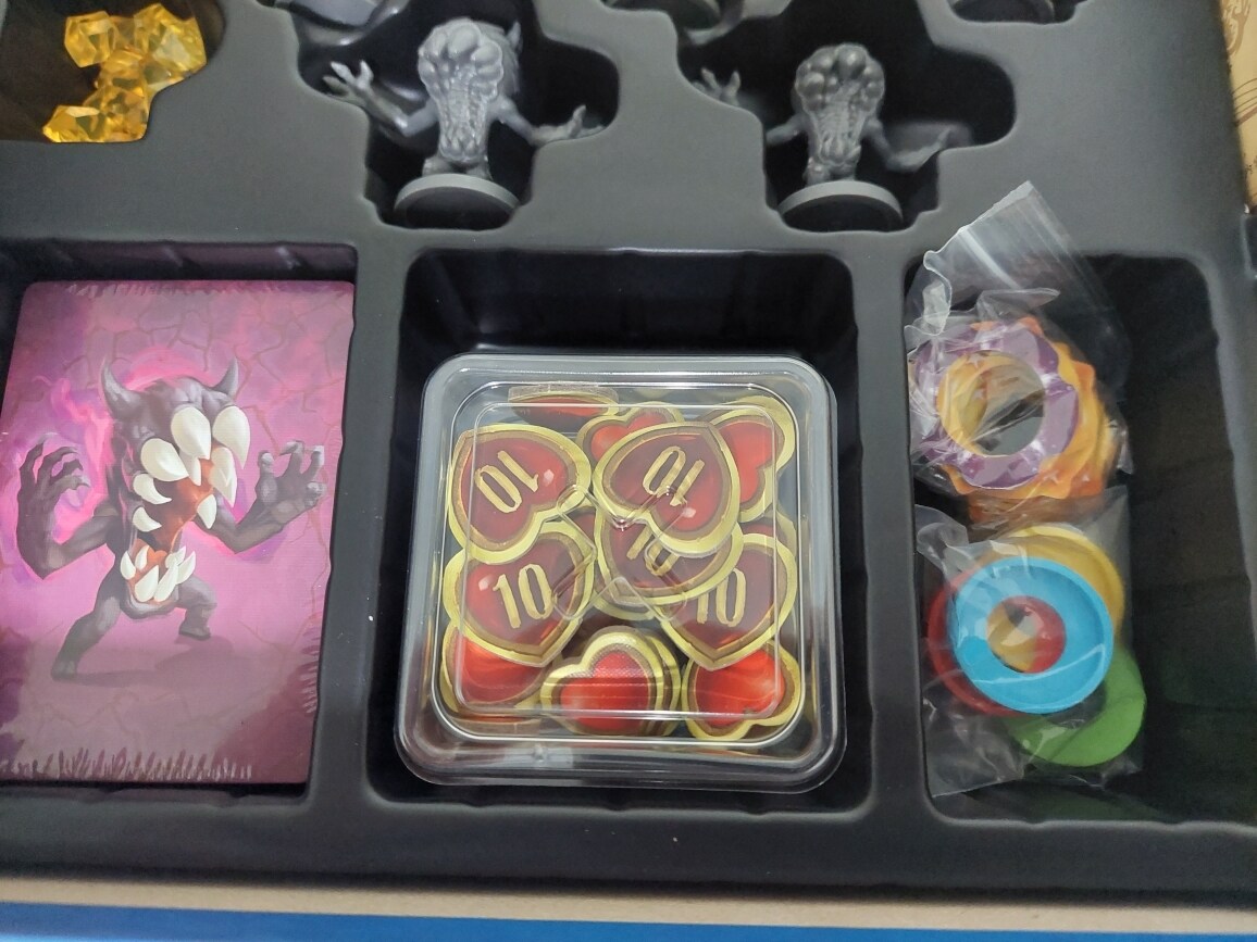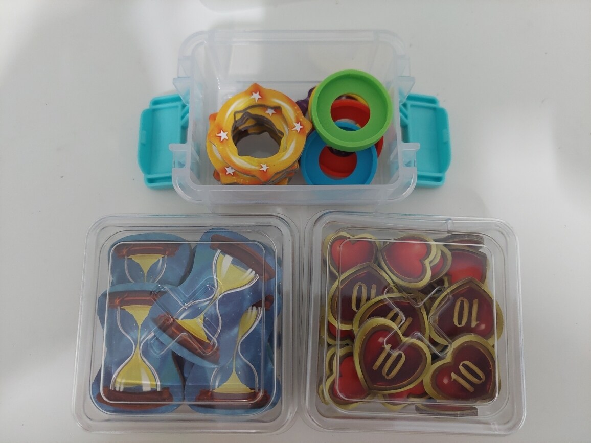最後試著用遊戲提供的收納盒裝戳戳樂的指示物,結果只夠裝沙漏跟血量