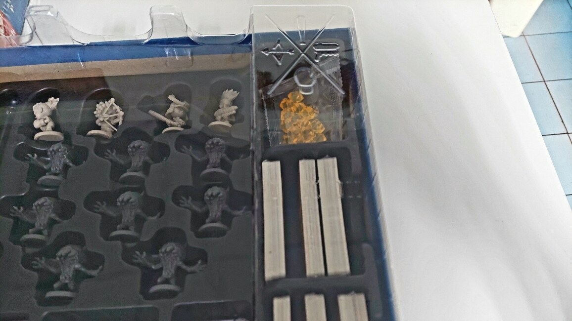 接下來就是收納微縮模型已經卡片的黑色泡殼,上面還有隔開這些書本與這些配件的透明殼呢