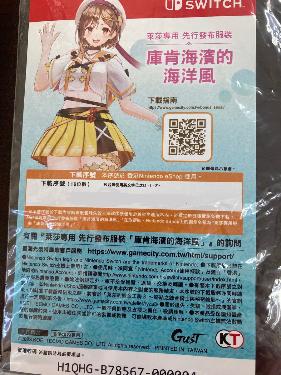 。光榮NS產品上的優點,就它家的首批NS遊戲序號