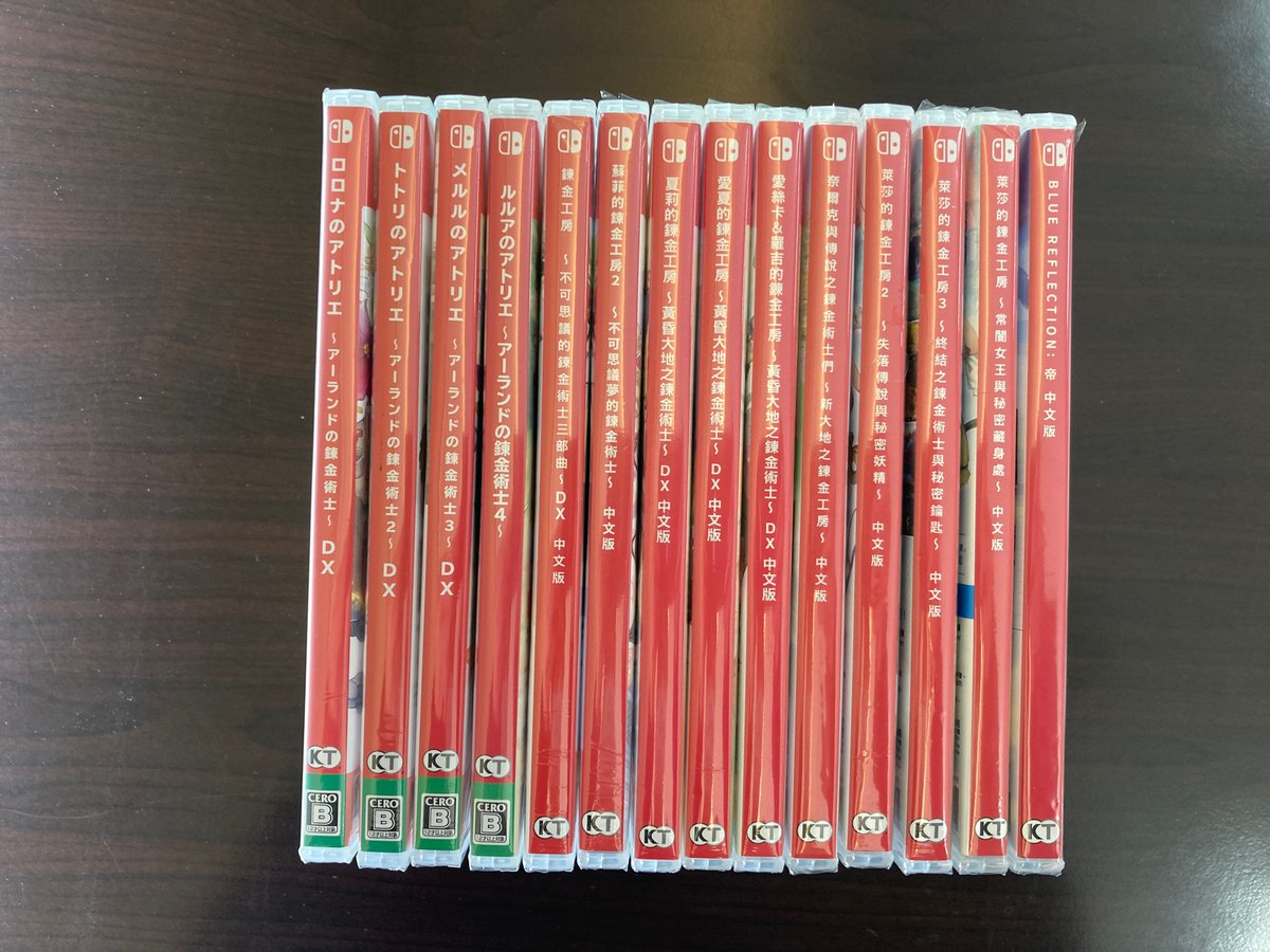 | 第二排∣萊莎的鍊金工房 ~常闇女王與秘密藏身處~∣萊莎的鍊金工房2 ~失落傳說與秘密妖精~∣萊莎的鍊金工房3 ~終結之煉金術士與秘密鑰匙~∣鍊金工房 〜不可思議之鍊金術士三部曲〜 DX∣BLUE REFLECTION: 帝∣ |