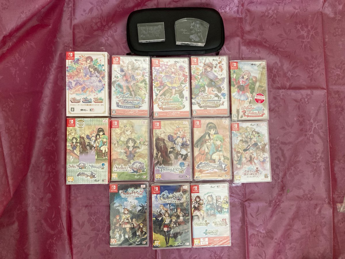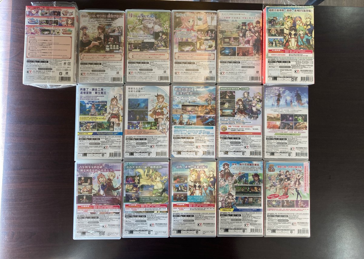 | 第一排∣亞蘭德DX三部曲日文封面盒套∣蘿樂娜的鍊金工房~亞蘭德之鍊金術士 DX~(ロロナのアトリエ 〜アーランドの錬金術士〜DX)∣托托莉的鍊金工房 ~亞蘭德之鍊金術士2 DX~(トトリのアトリエ 〜アーランドの錬金術士2〜DX)∣梅露露的鍊金工房 ~亞蘭德之鍊金術士3 DX~(メルルのアトリエ 〜アーランドの錬金術士3 〜DX)∣露露亞的鍊金工房 ~亞蘭德之鍊金術士4~(ルルアのアトリエ 〜アーランドの錬金術士4〜)∣黃昏三部曲DX中文封面盒套∣ |