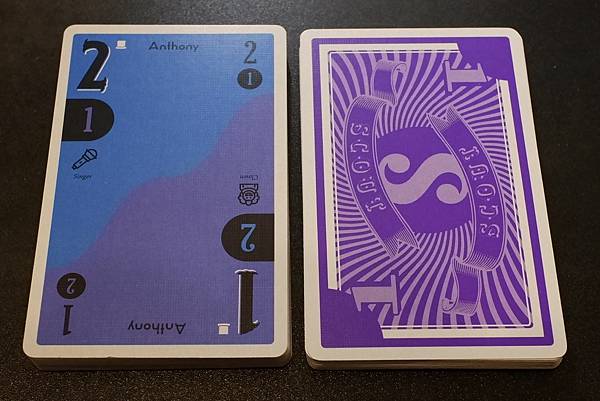 如果仔細看的話,會發現這個版本的美術有用心之處,遊戲的主題是玩家扮演經理人的角色,派馬戲演員去賺錢的同時,適度的補充並調整人力,所謂的人力就是玩家的手牌,你可以看到卡牌上有馬戲演員的名字和特長,名字的部分,四十五張牌的名字都不同。