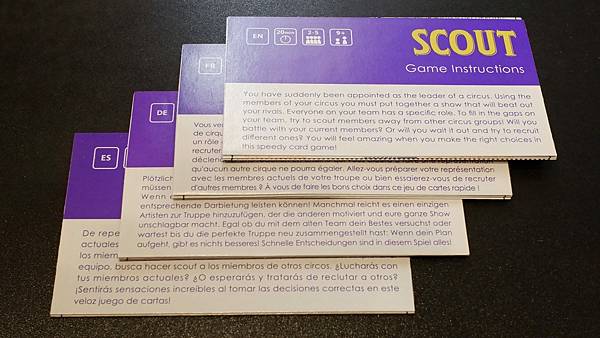 四種語言,沒有中文,雖然這遊戲在玩的時候都是看圖或看數字就好,但是如果一定要中文的規則書,那就只能買另一個廠商的版本,嘛,簡體中文,嚴格來說其實台灣沒有代理。