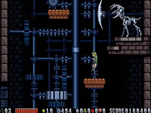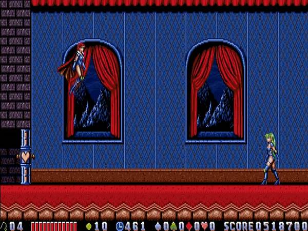 但其實早在惡魔城系列遊戲處於發展階段,仍不斷有新作推出的時期,就曾經出現一款和傳統惡魔城相似度超過八成的女角動作遊戲,不確定場景夠不夠哥德風,我只知道這款遊戲是馬甲內衣戰士的先驅,與同樣從電腦遊戲發跡的比基尼夢幻戰士,頗有相互輝映的意味,為許多男性玩家打開一盞明燈,耀眼無比