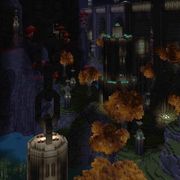 大門後只有一間大房間,單層地板配上虛空超級刺激,有高壓苦力怕和喚魔者守門,生怪磚密度以黑色來說算是溫柔。
