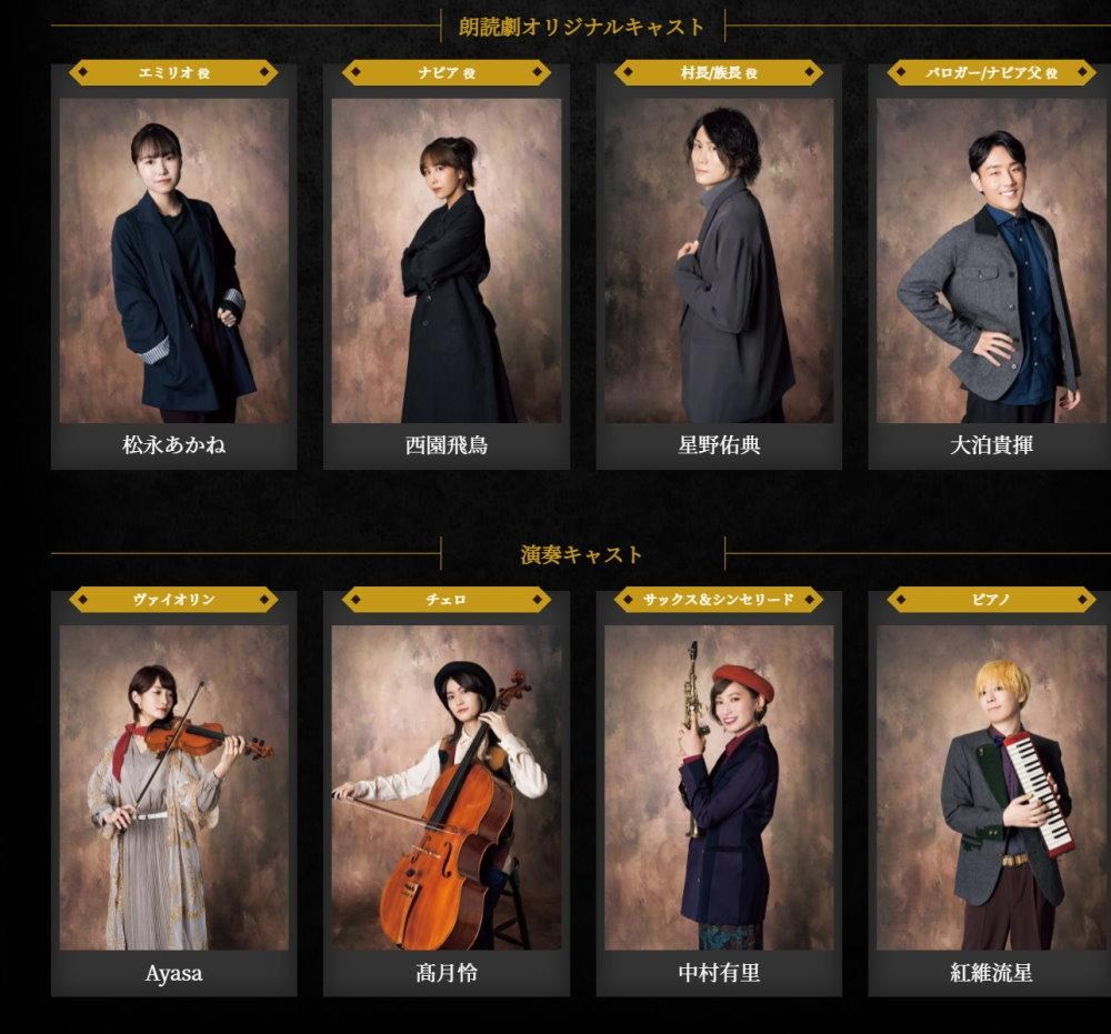 參予演出的有青木瑠璃子(トレサ)、小西克幸(オルベリク)、桑島法子(プリムロゼ)、関智一(アーフェン)、甲斐田裕子(ハンイット)...等陣容。並找來劇團「地下空港」的伊藤靖朗擔任導演和編劇。
