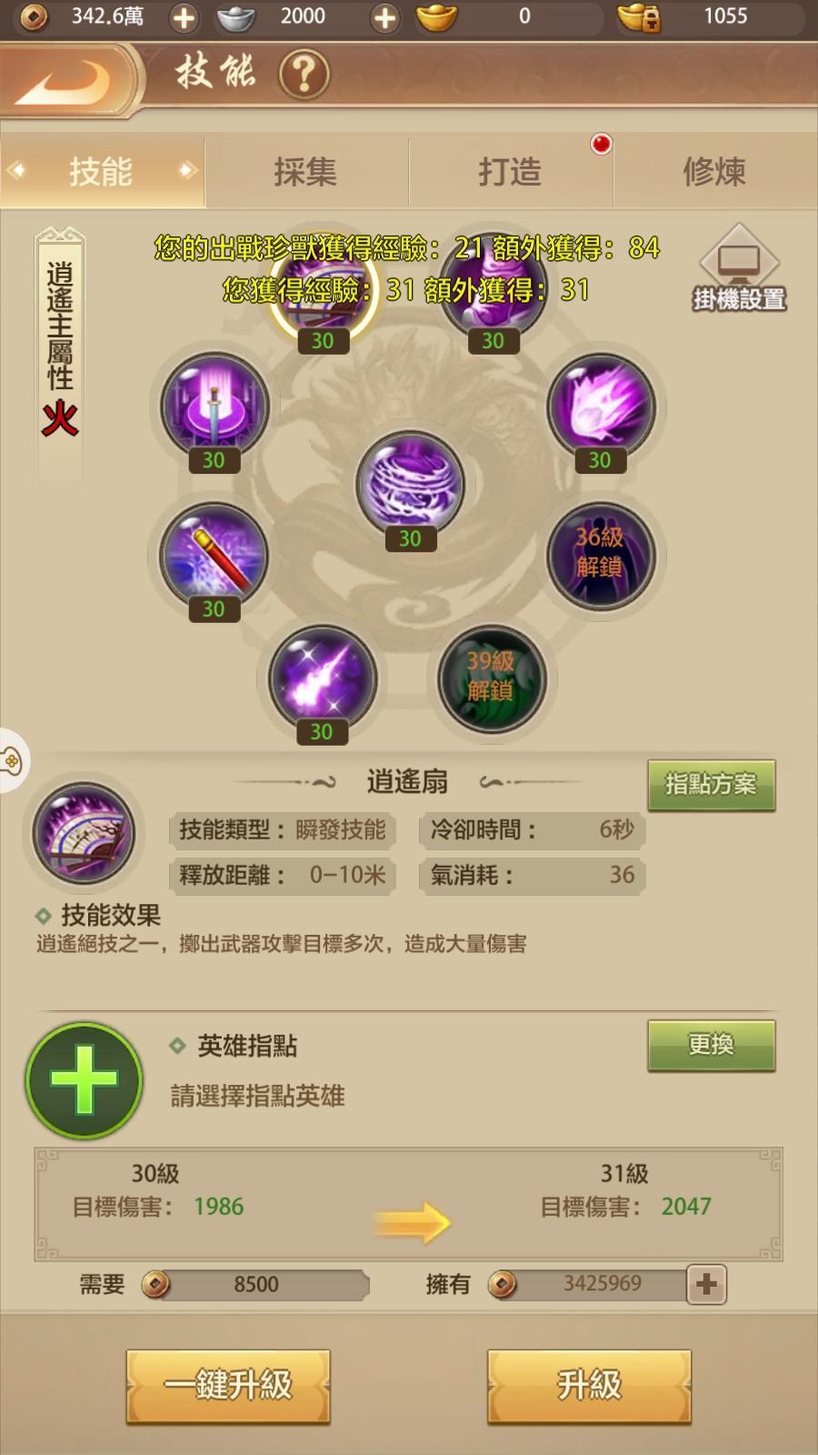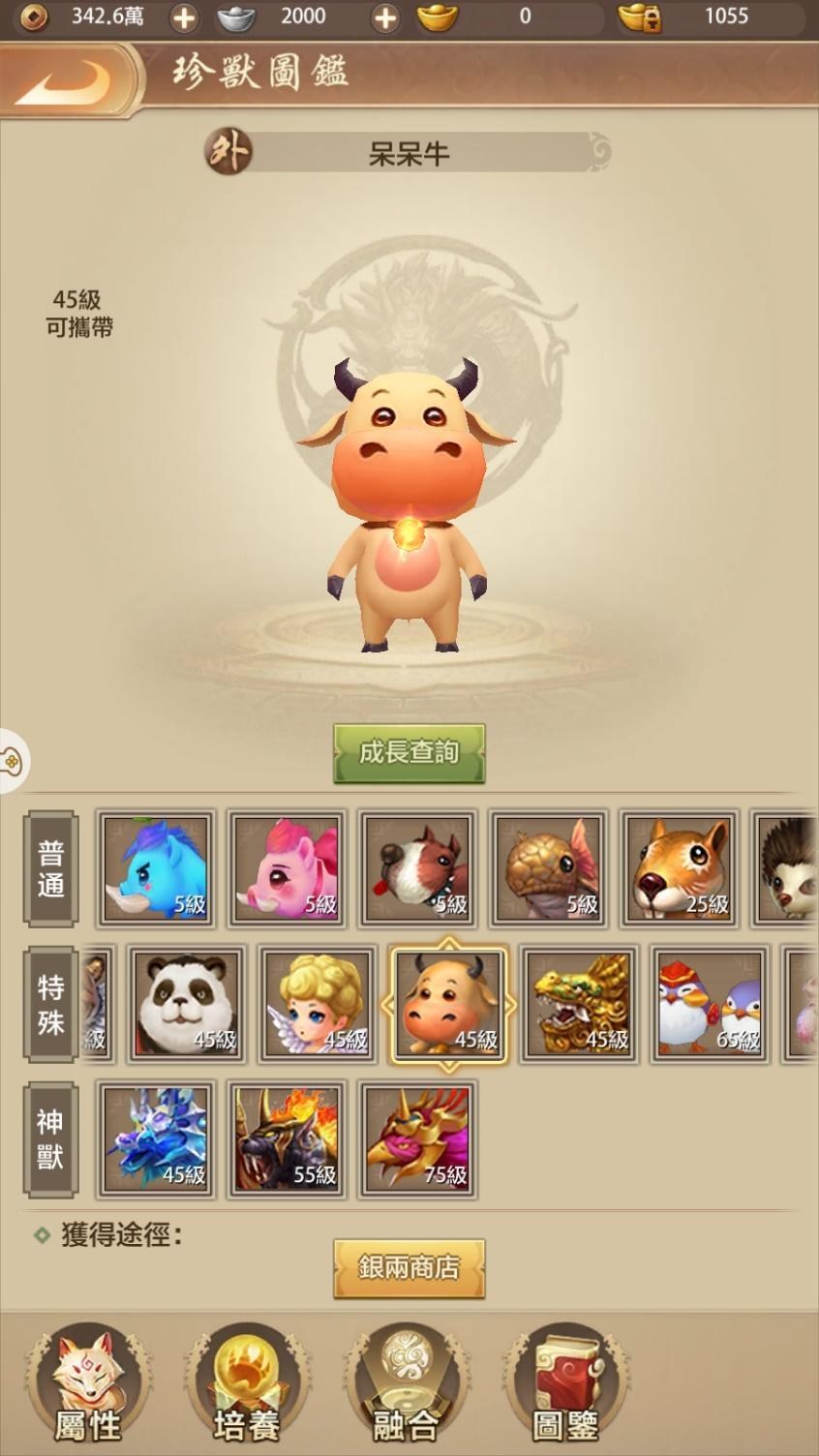 珍獸可以輔助作戰,透過相關養成可以提高其作戰能力。英雄譜則是結交各方NPC英雄,這些英雄都是在小說中熟悉的角色,和他們提高好感度,可以獲得更多的額外屬性加成給玩家角色,還能放在技能中的英雄指點增加技能額外的能力,技能本身也還可以透過升級增幅一定效果。