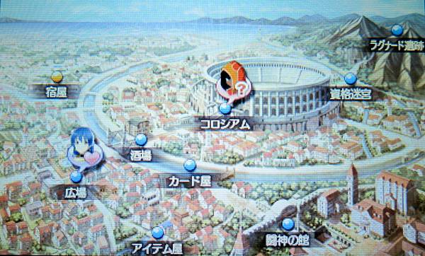遊戲的場景範圍很像迷宮式RPG,差別只在迷宮採俯瞰視角(迷宮式RPG大半都採用第一人稱視角),城鎮各大主要地點都以選單方式進入,包括旅館、街道、酒館、裝備道具店、魔物娘卡片店、鬥神大會競技場、鬥神之館等等,其中實際有地圖可逛的部分只有資格迷宮和遺跡迷宮兩座(鬥神之館則在中段之後可進入)