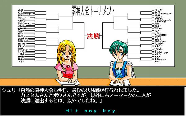 鬥神大會的賽事是隨故事安排,透過事件標示進入比賽,而此部分也算是一場特定的Boss戰,與其他戰鬥的差別在於禁止使用卡片技能(還是能用其他技能與道具)