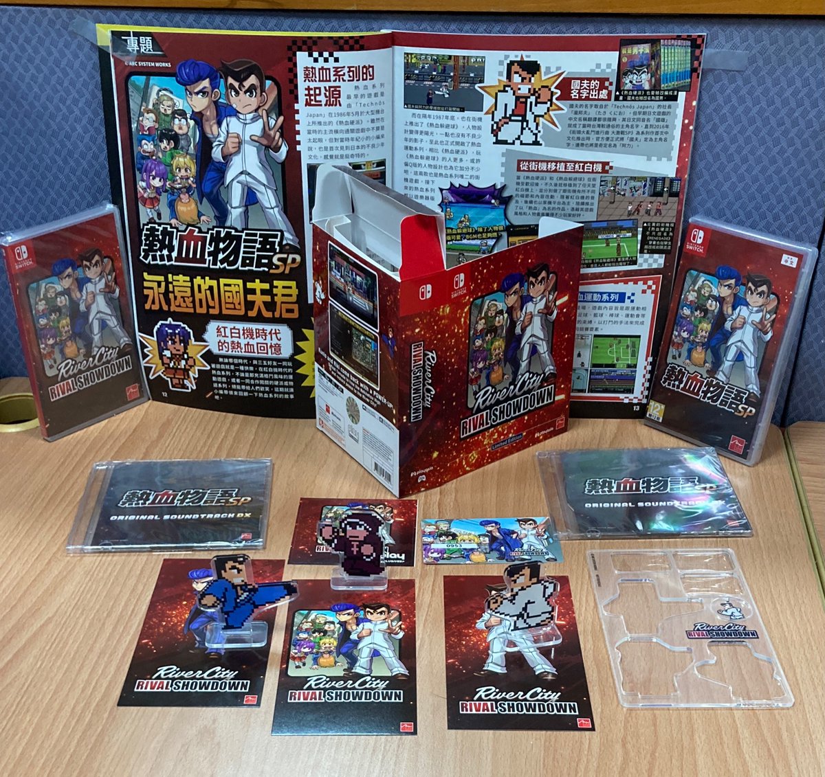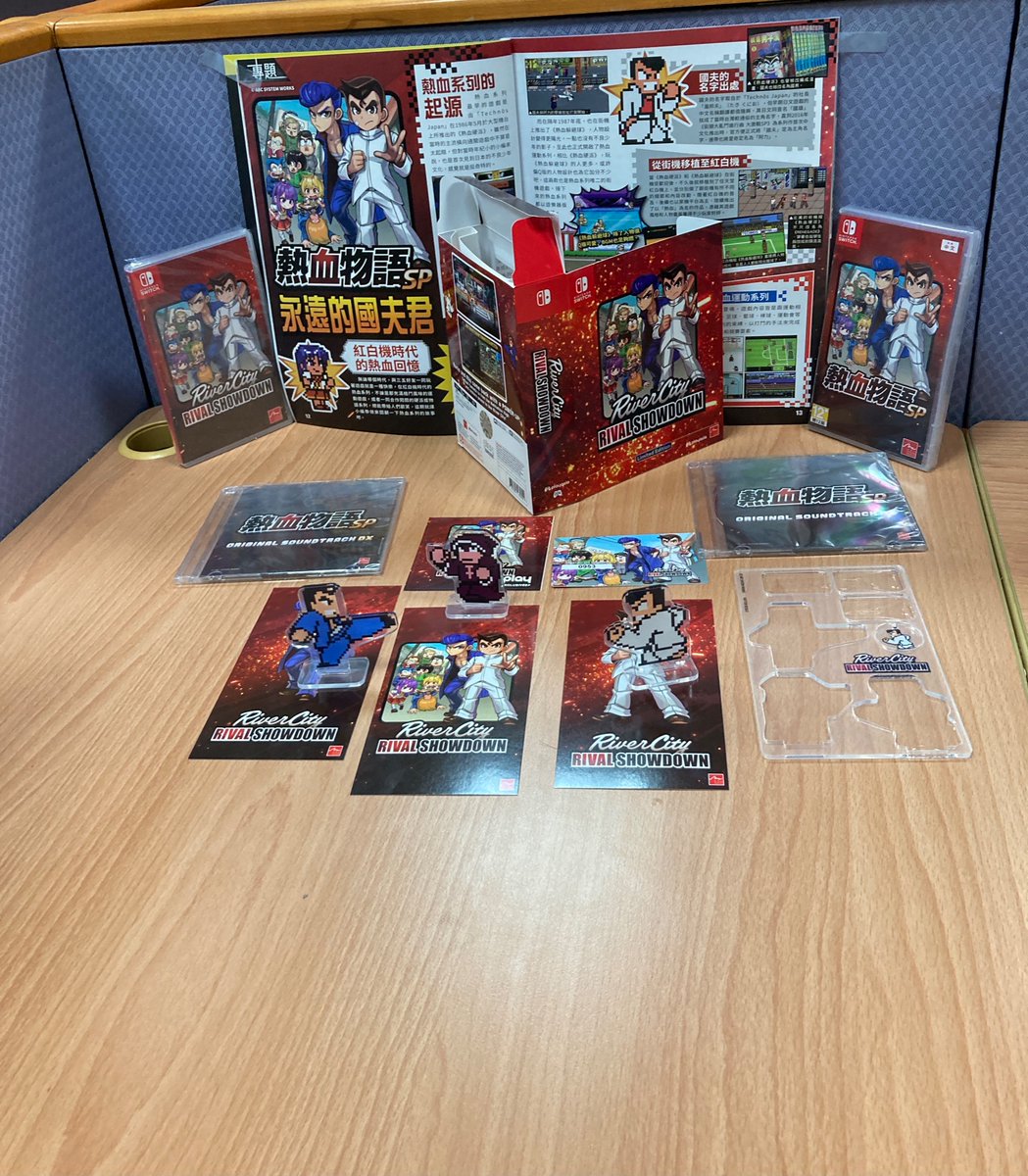 限定版 內容物 包括:River City: Rival Showdown - Nintendo Switch 實體遊戲片 原聲帶CD(Original Soundtrack CD) 壓克力角色立牌組(Acrylic Standee Set) 迷你遊戲盒鑰匙圈 (可收納卡匣)(Minicase Keychain (holds Switch Game)) 收藏藝術卡(Art Card Collection) 單獨編號證書(Individually Numbered Certificate) 限定版收納盒(Windowed Collector’s Box) |