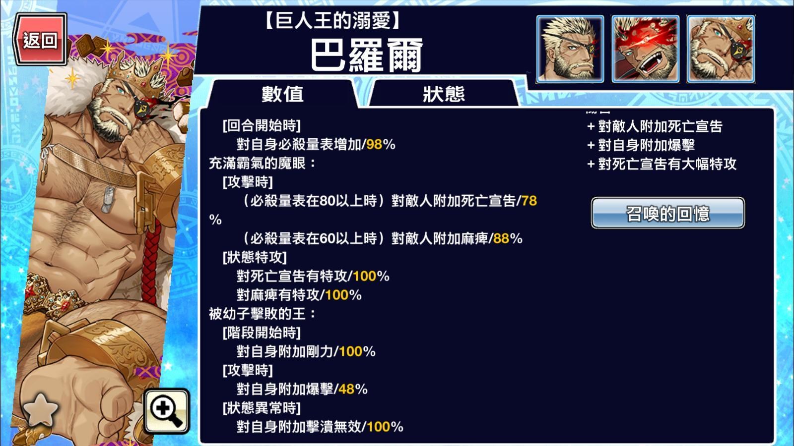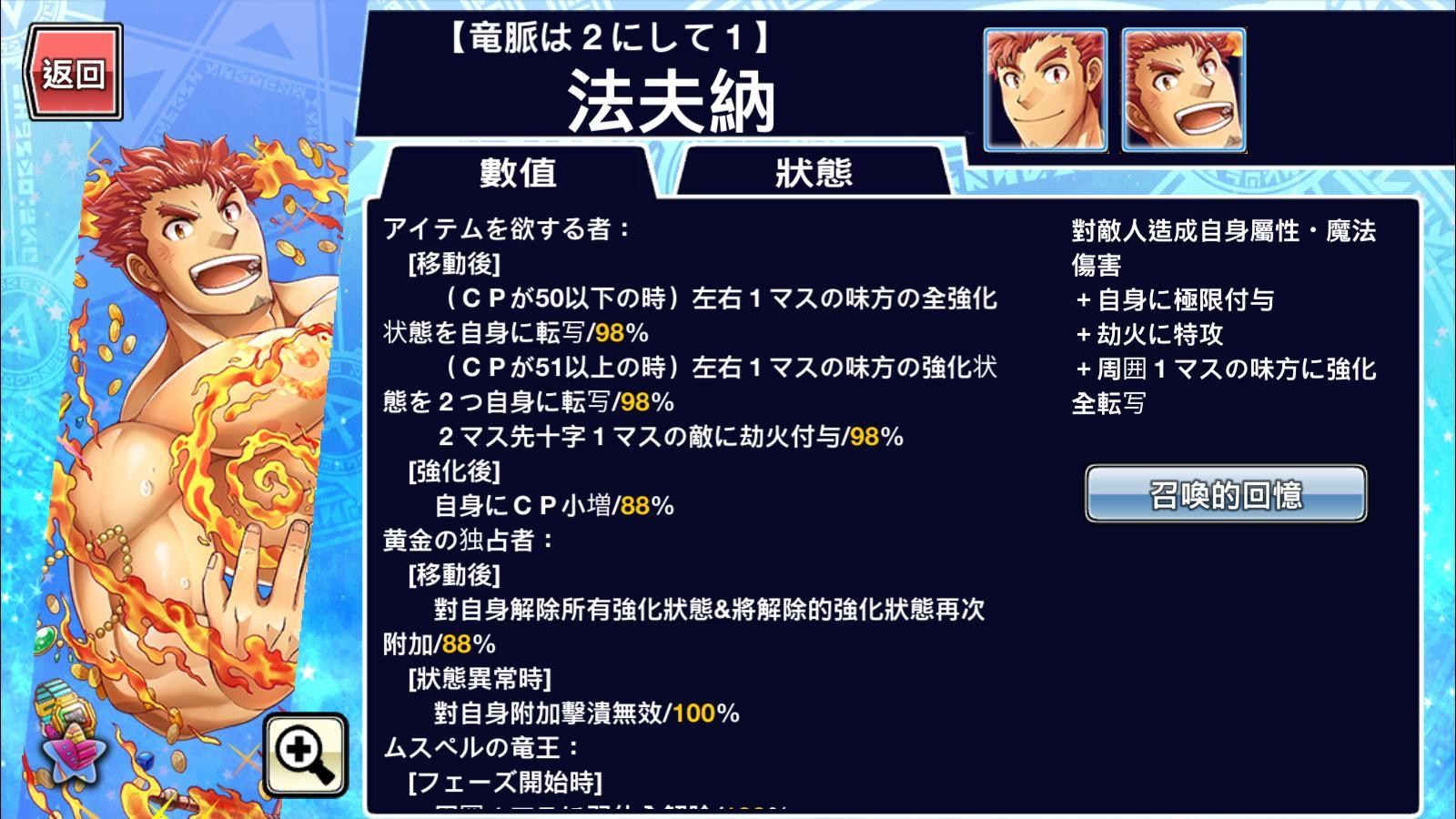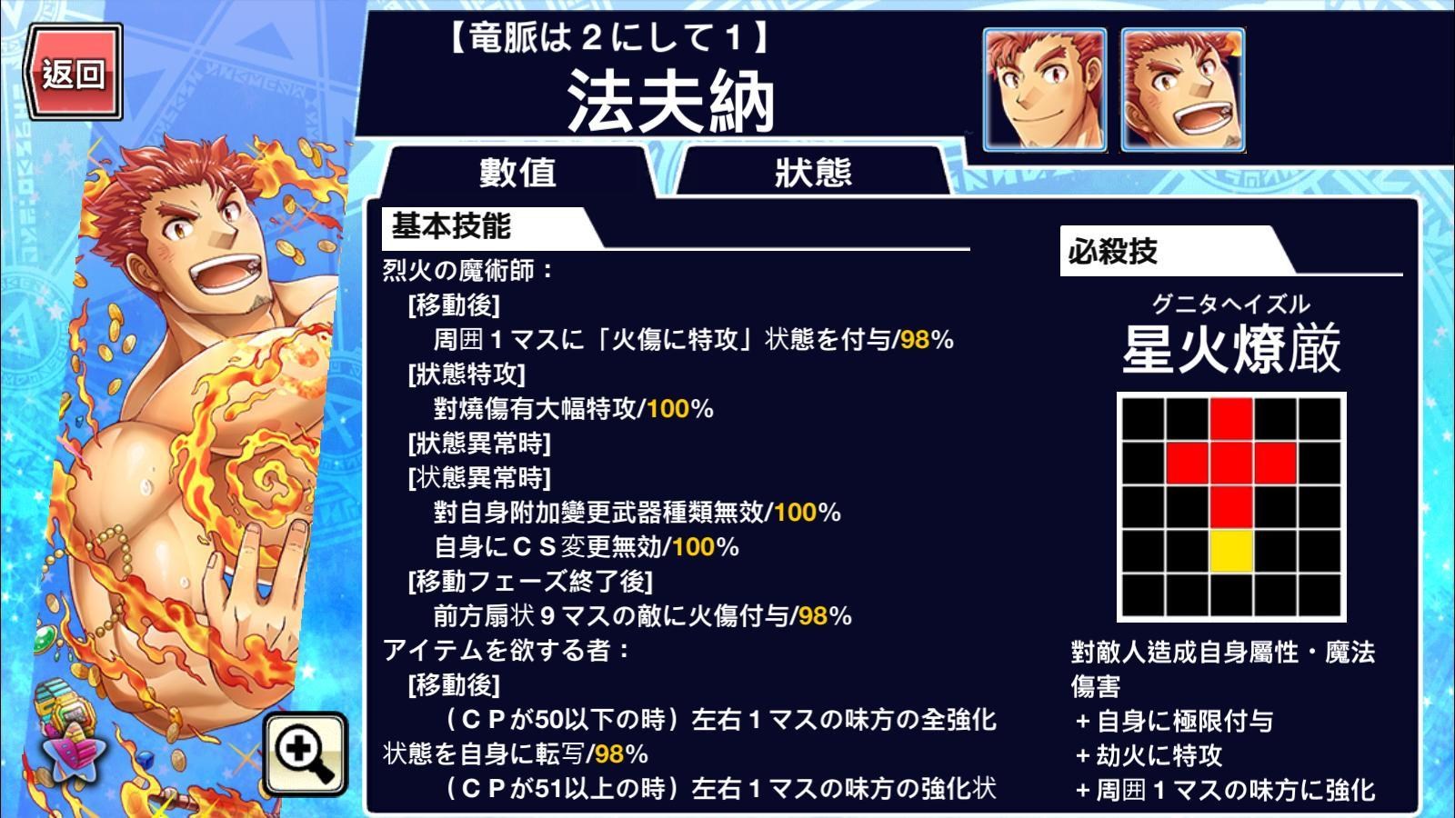 隊員含提升獲得金幣.AR含提升獲得金幣.等級經驗.種子.花.戰友點數(除賴朝需要AR附加剛力時提昇攻擊力),所有必要技能的發動率皆是100%