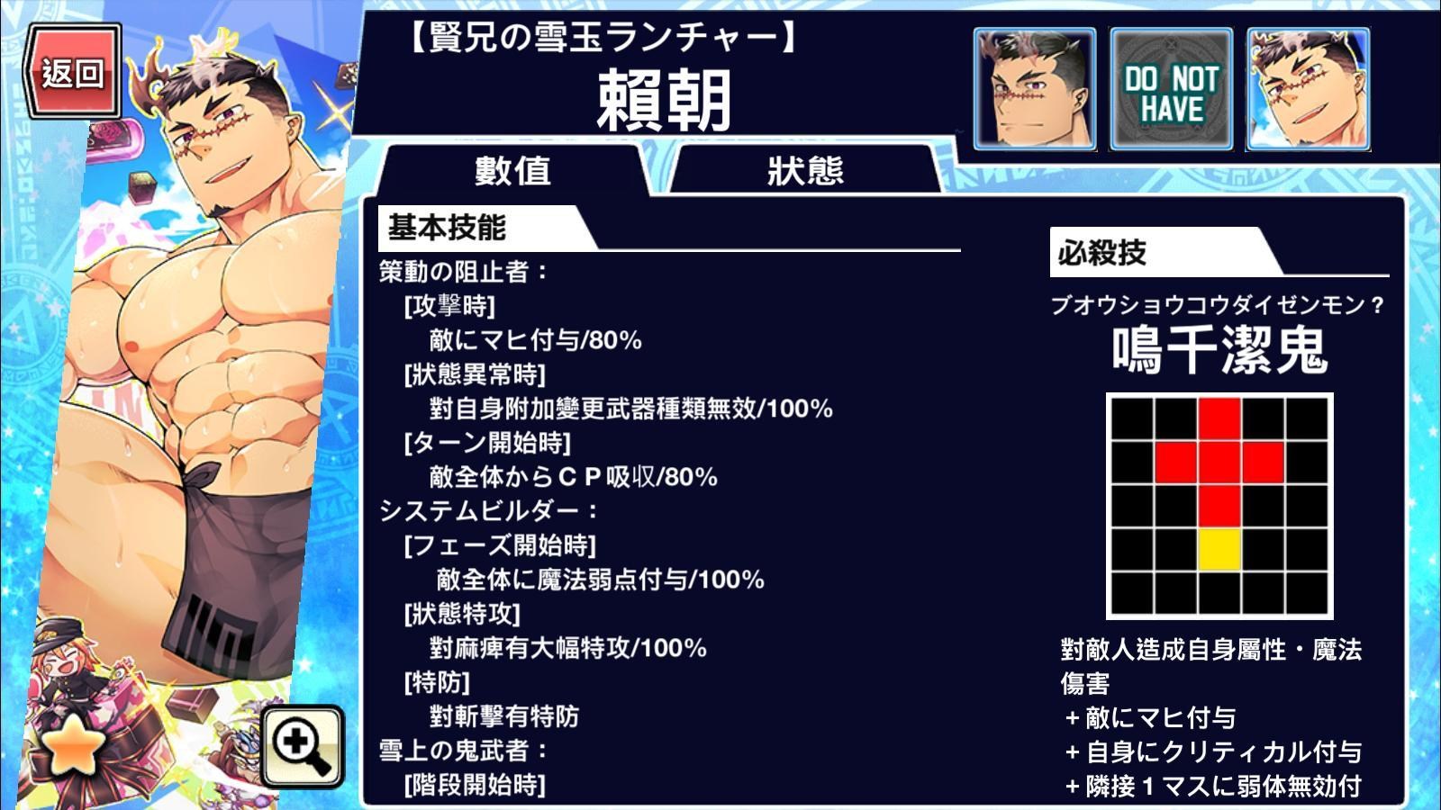 賴朝的魔法弱點.技能封印無效.剛力是必要技能