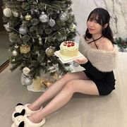 聖誕餐普通沒關係,但聖誕蛋糕一定要好看好吃,我對蛋糕有莫名的執念。所以我找已經訂過好幾次的蛋糕店家,裝飾走日系的清淡風格,很簡單,但好吃,我喜歡簡單的東西。今年的聖誕蛋糕主題是聖誕花圈,很可愛,內餡是一層抹茶慕斯一層草莓,不會過甜,配合得剛剛好。(我搬回家的時候蛋糕一邊被我撞爛了,只能拍特定角度XD)