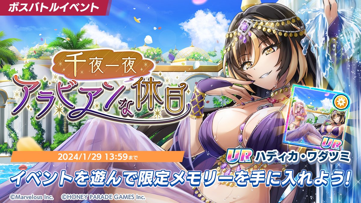 一千零一夜 阿拉伯的假期 (千夜一夜 アラビアンな休日) 」,同時開放新卡池。