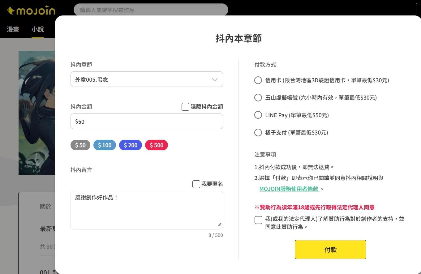 MOJOIN開啟抖內系統。
