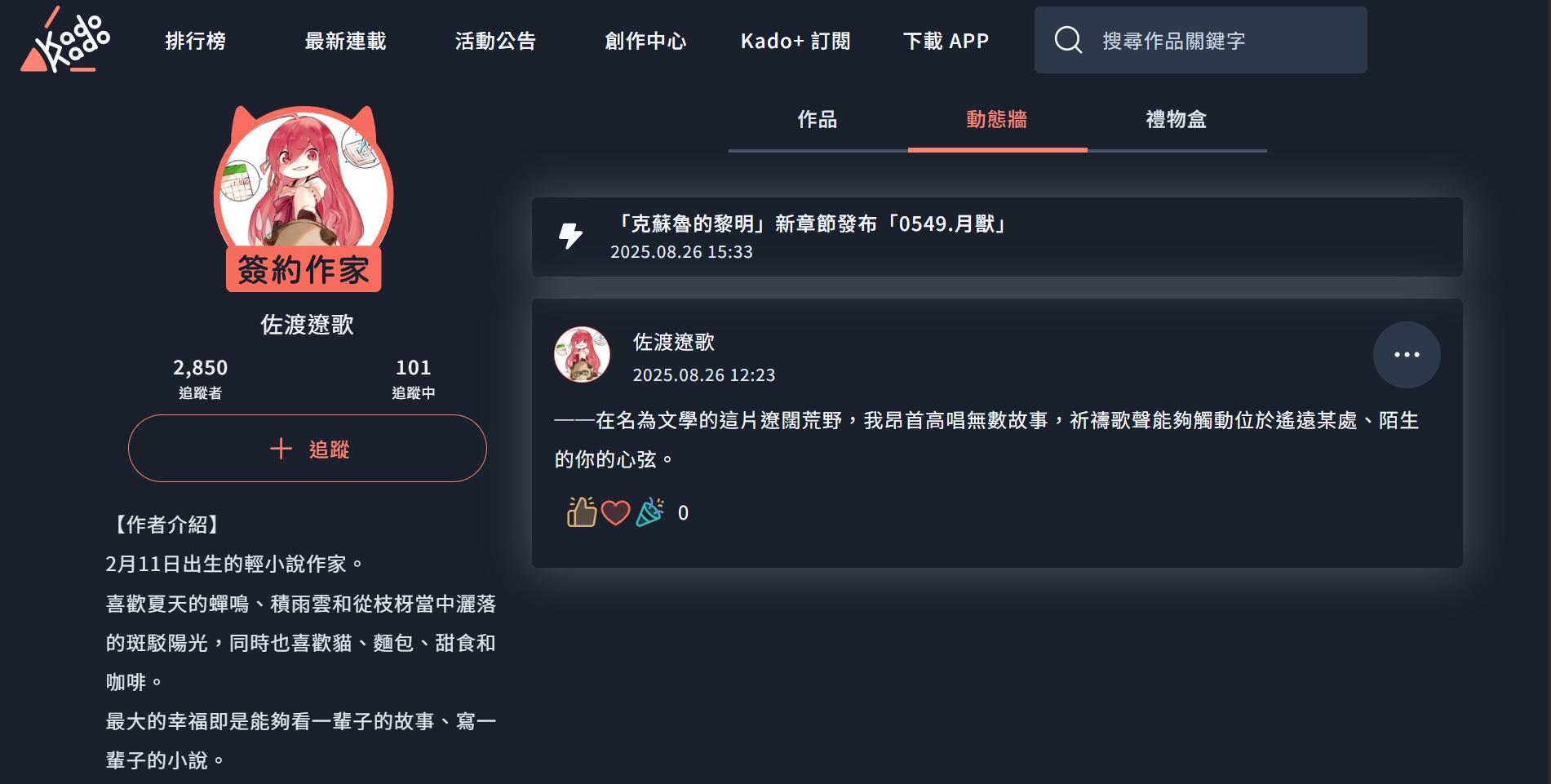 實裝「追蹤作者」、「動態牆」等等新功能。
