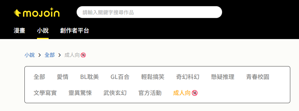 MOJOIN新增R18的成人向作品類型。