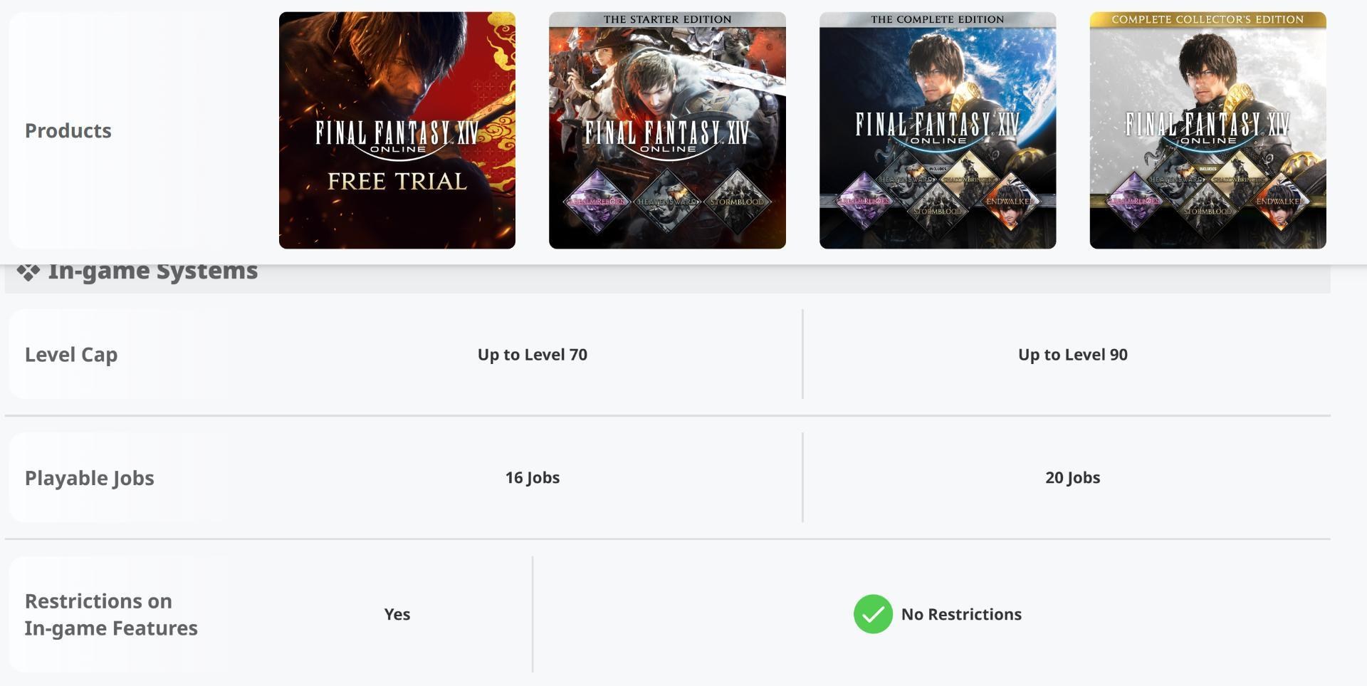 然後正式版時正常會分開兩個版本作購買,一個是新手版,一個是完整版( 豪華版先不要理)。新手版一樣最高可以到達70Lv ,同時有16個可玩職業,亦包括前三個大型DLC 。